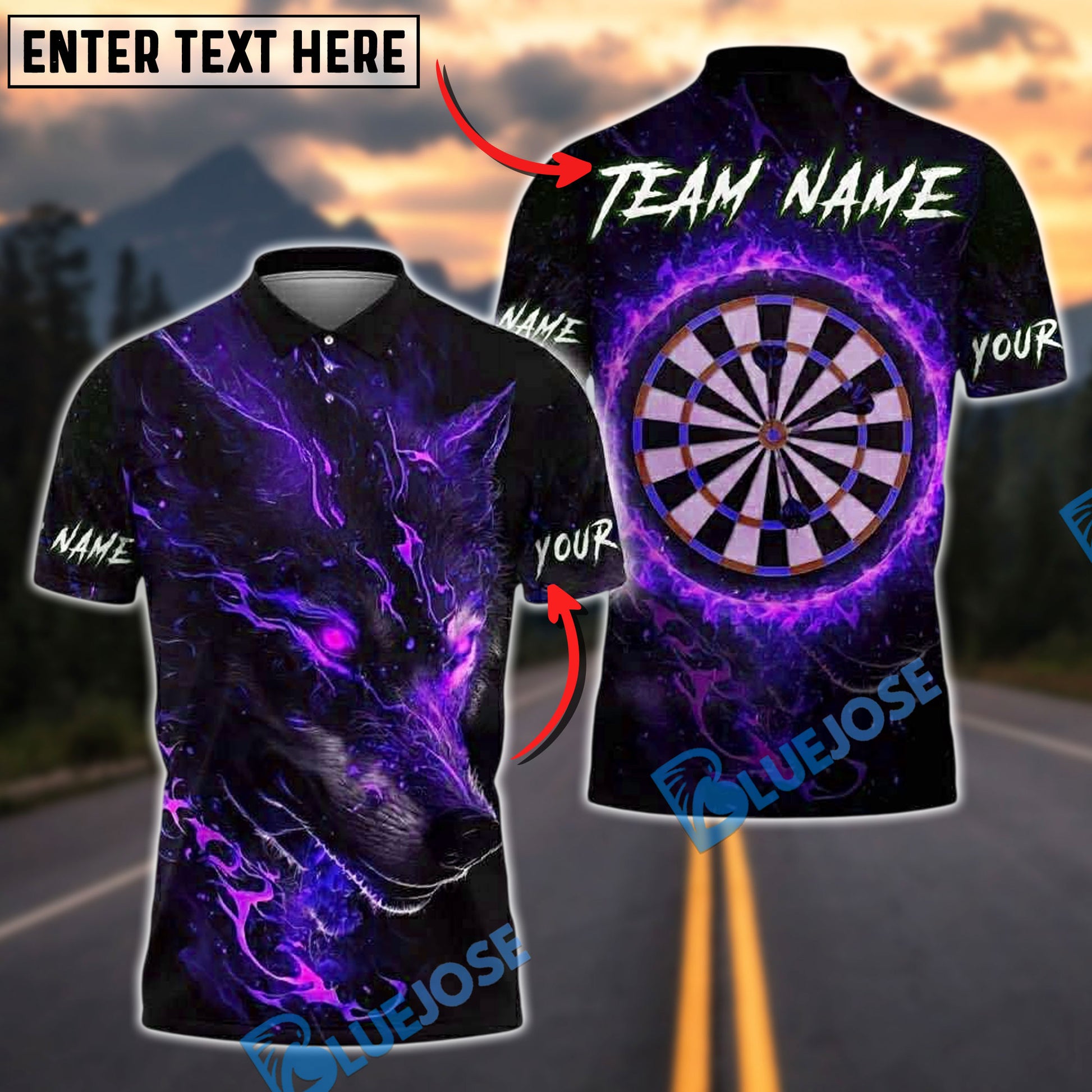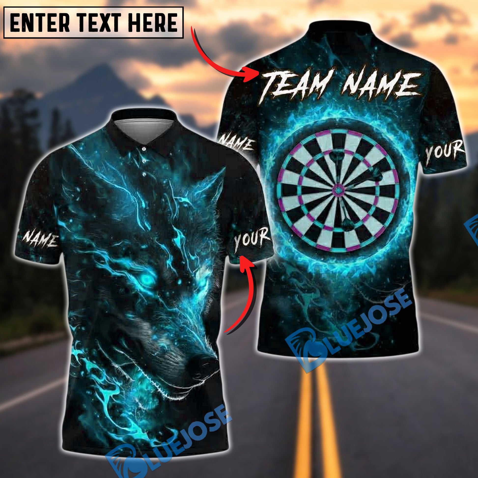 BlueJose Darts Wolf Head Fire Eye Dartboard Personalized Name, Team Name Unisex Shirt (4 Colors)