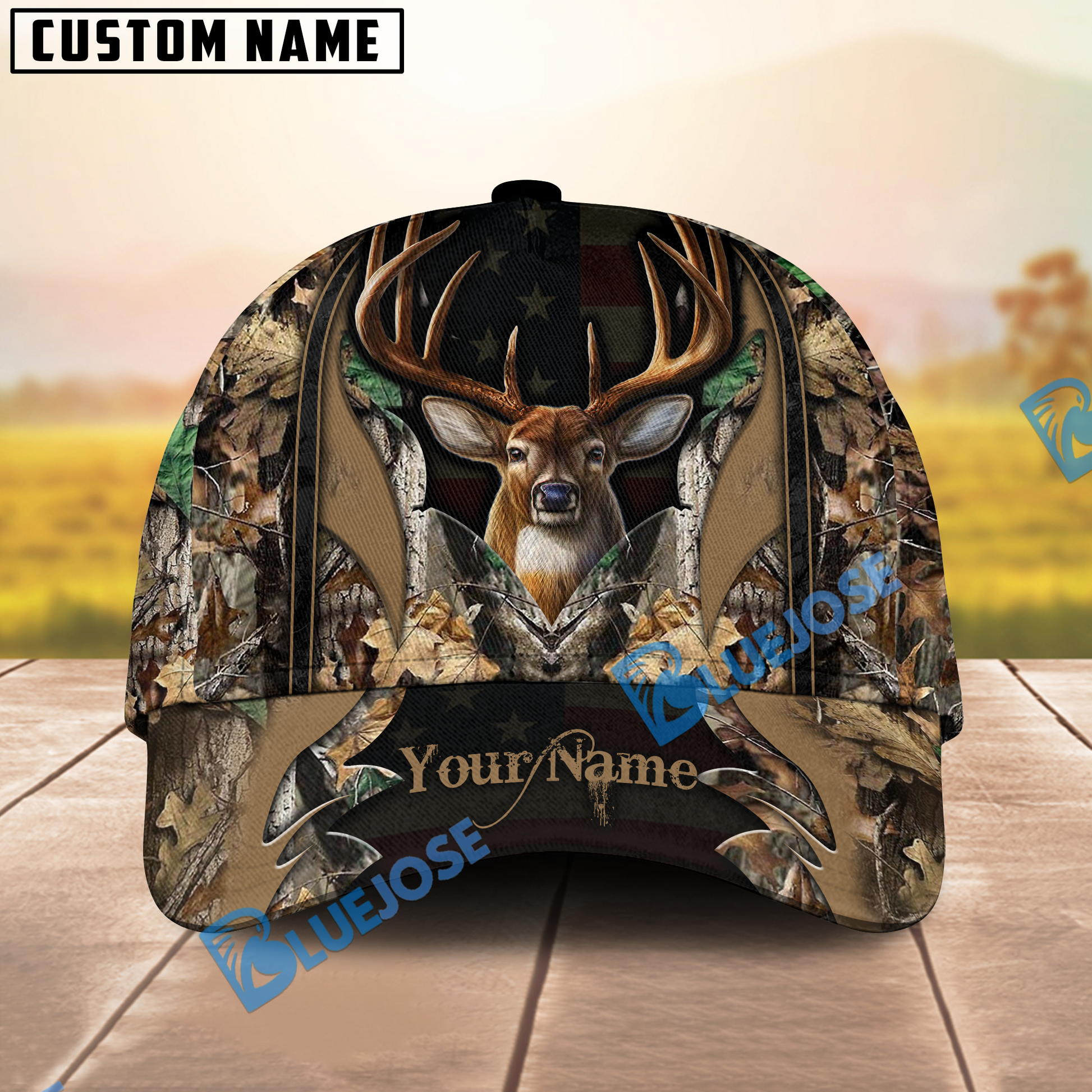BlueJose Deer Hunting The Best Of Flag Multicolor Option Personalized Name 3D Cap