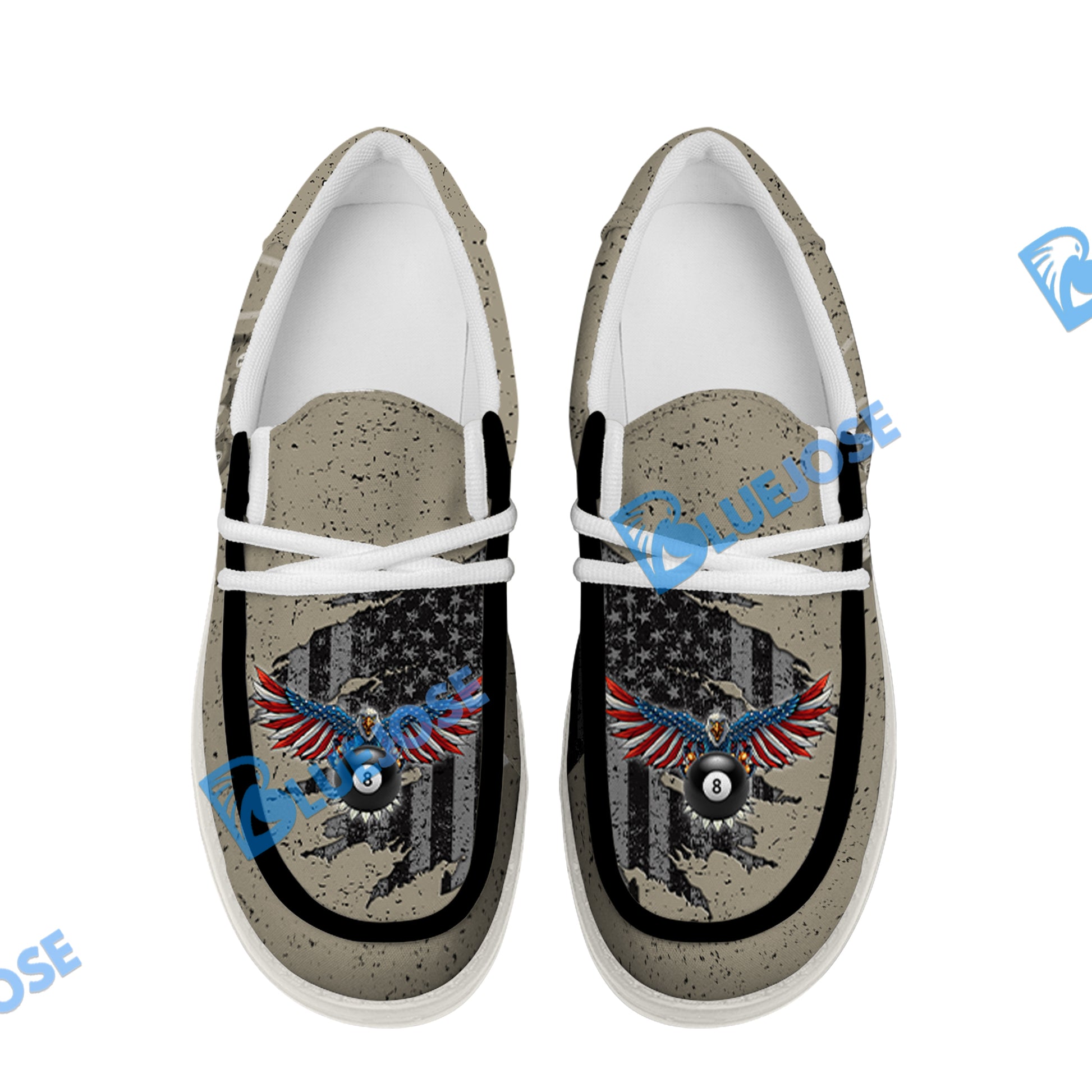 BlueJose Eagle Retro American Flag Billiard White Canvas Loafer Shoes
