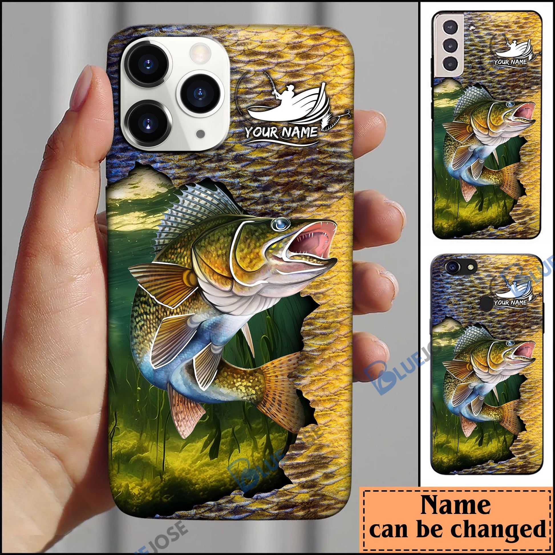BlueJose Fishing Walleye Skin Personalized Name Phone Case