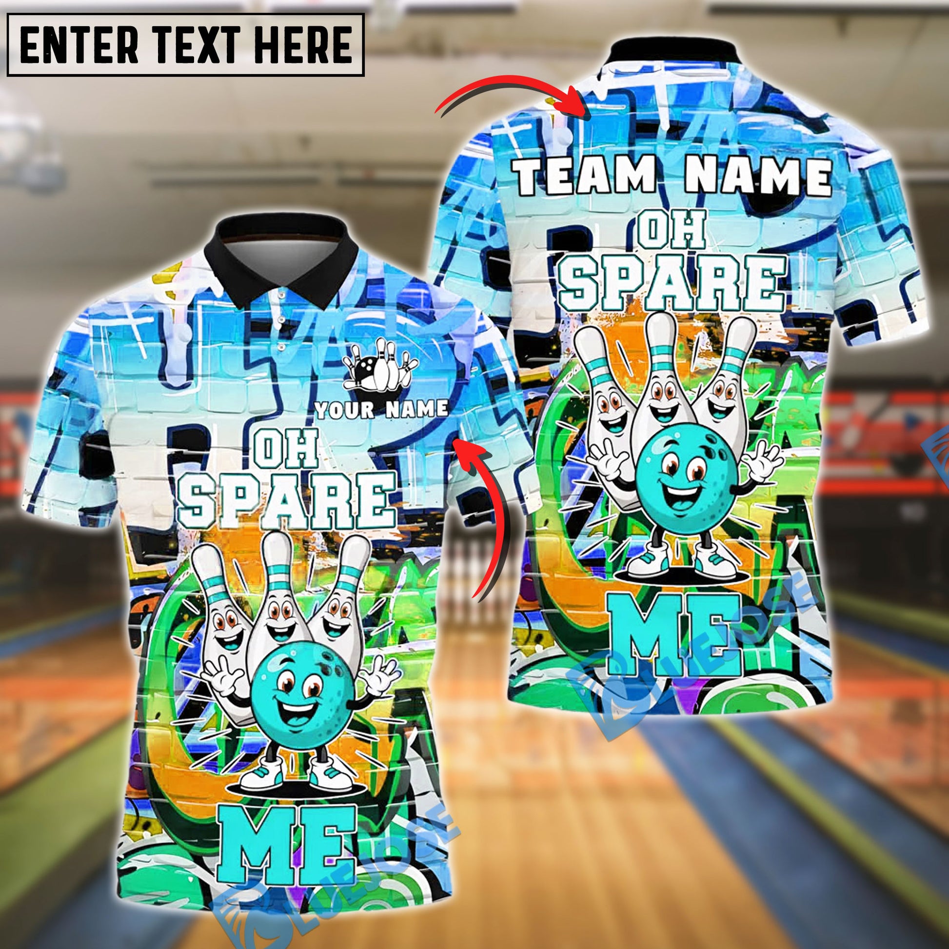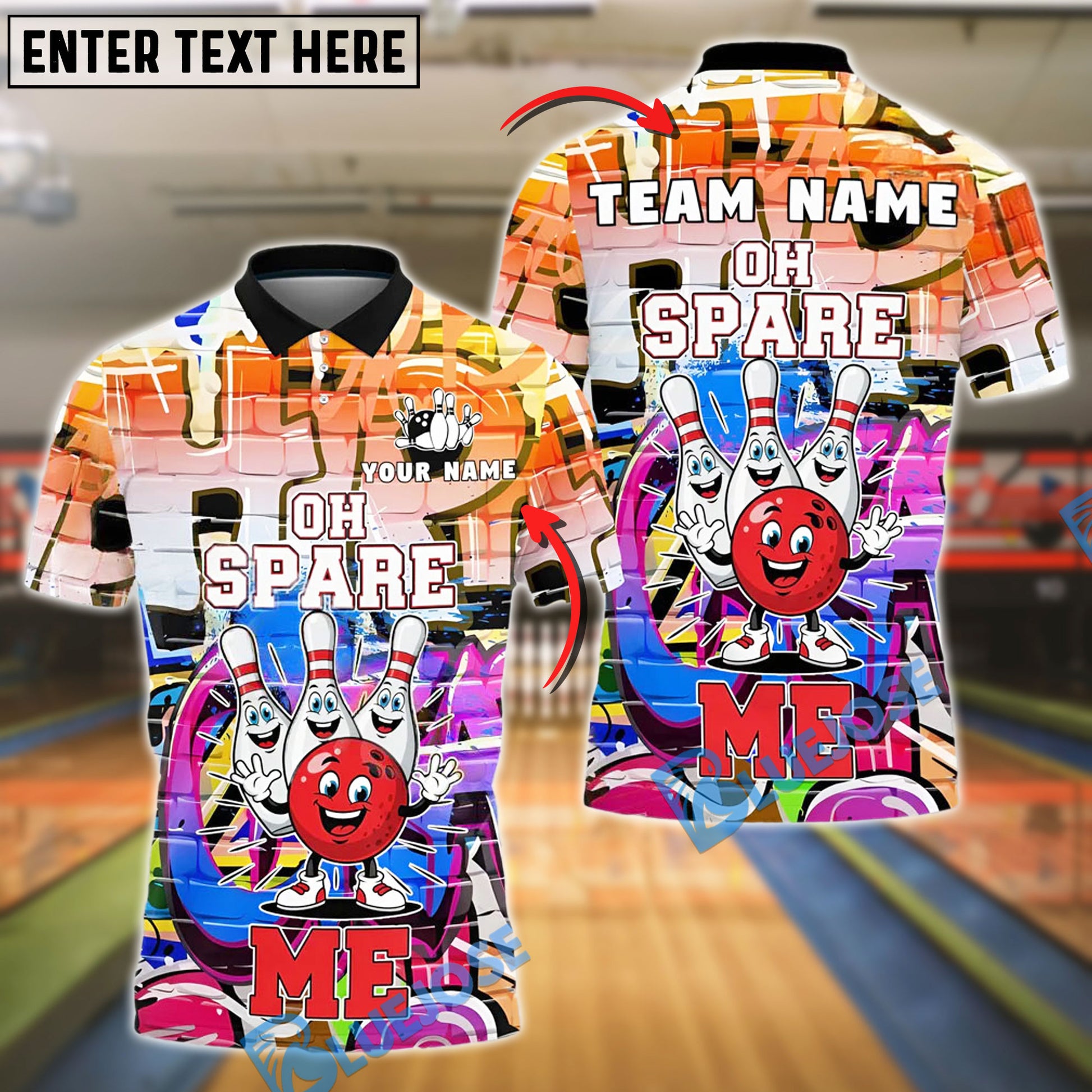 BlueJose Funny Bowling Ball&Pins Oh Spare Graffiti Style Customized Name, Team Name 3D Shirt (4 Colors)