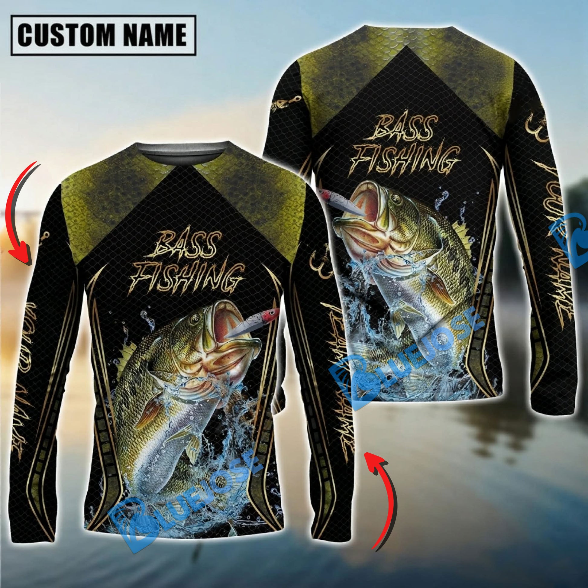 Bluejose Golden Bass Fishing Jumping Design Custom Name & Team Name 3D Shirts