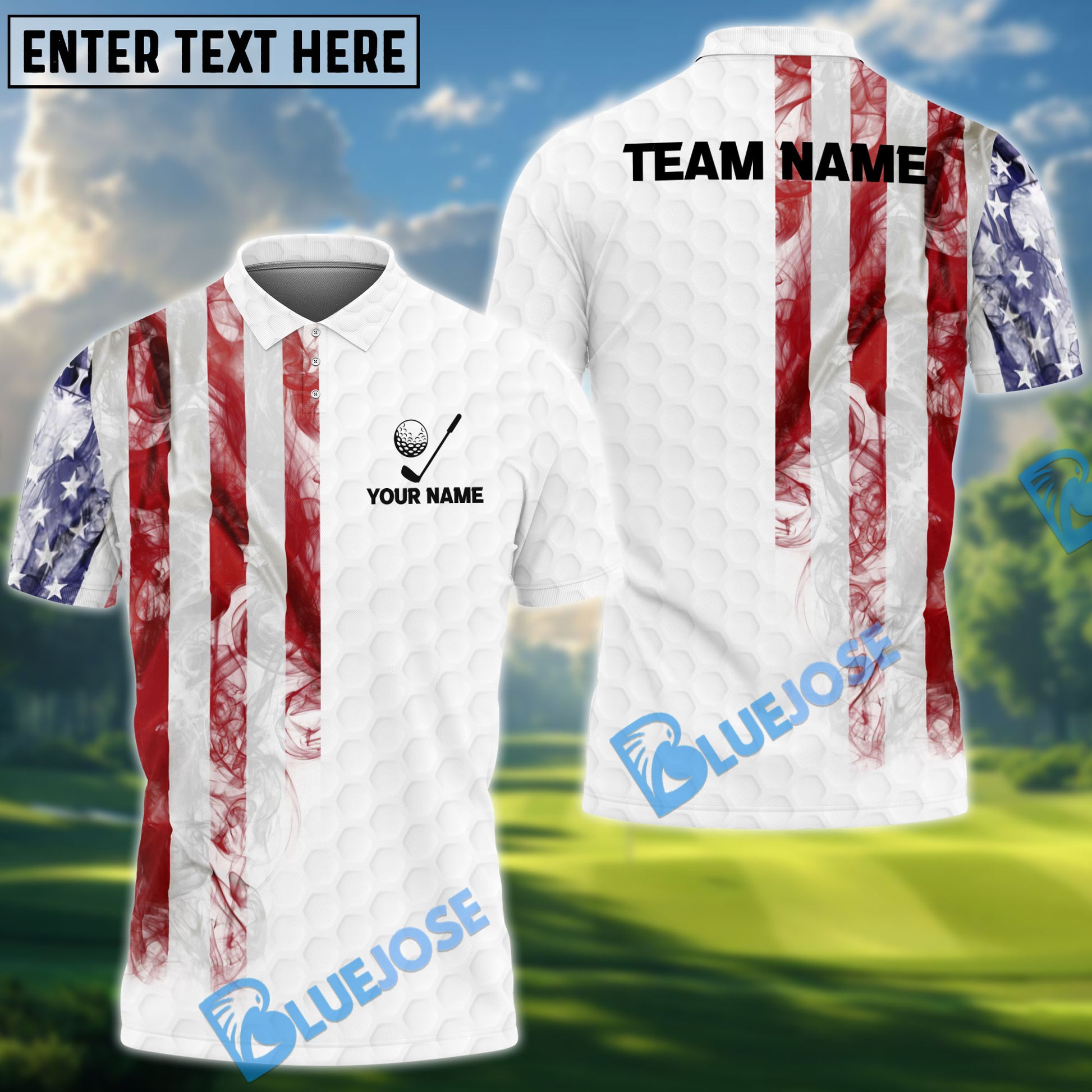 BlueJose Golf US Flag with Ball Pattern Customized Name, Team Name 3D Shirts