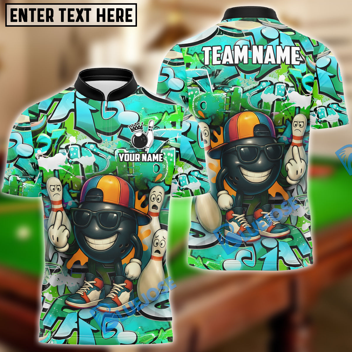 BlueJose Graffiti Bowling Attitude Customized Name, Team Name 3D Shirt (4 Colors)