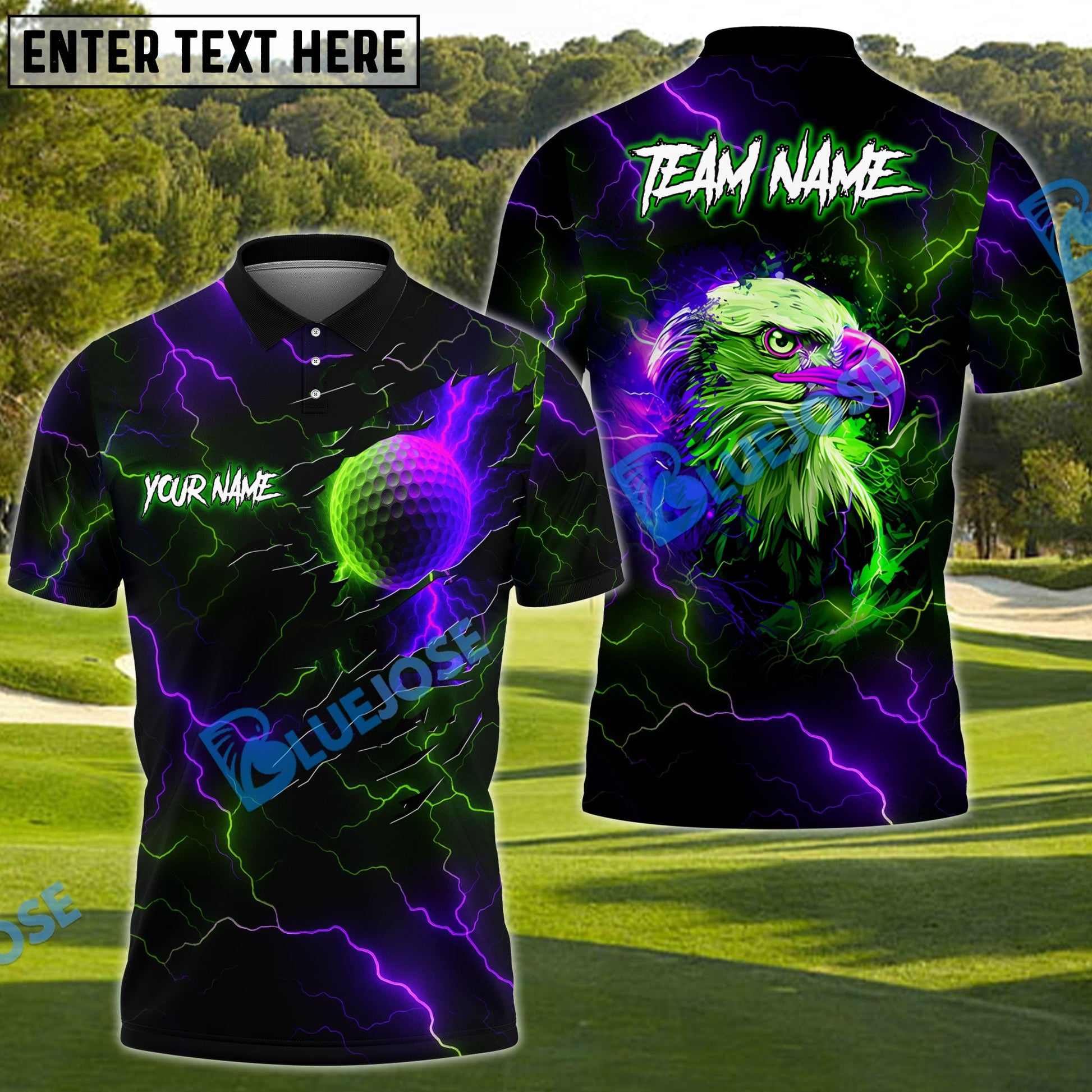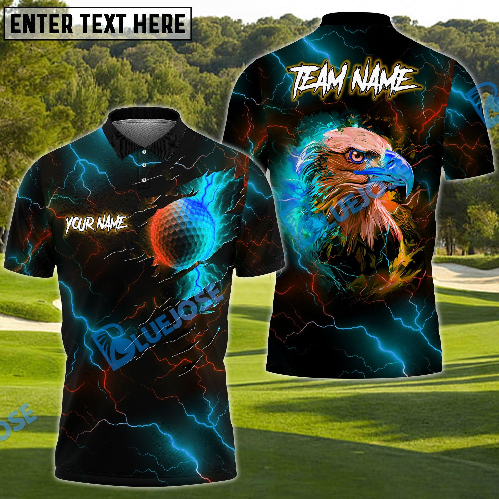 BlueJose American Eagle Lightning Golf Shirt Customized Name, Team Name 3D Shirts (4 Colors)