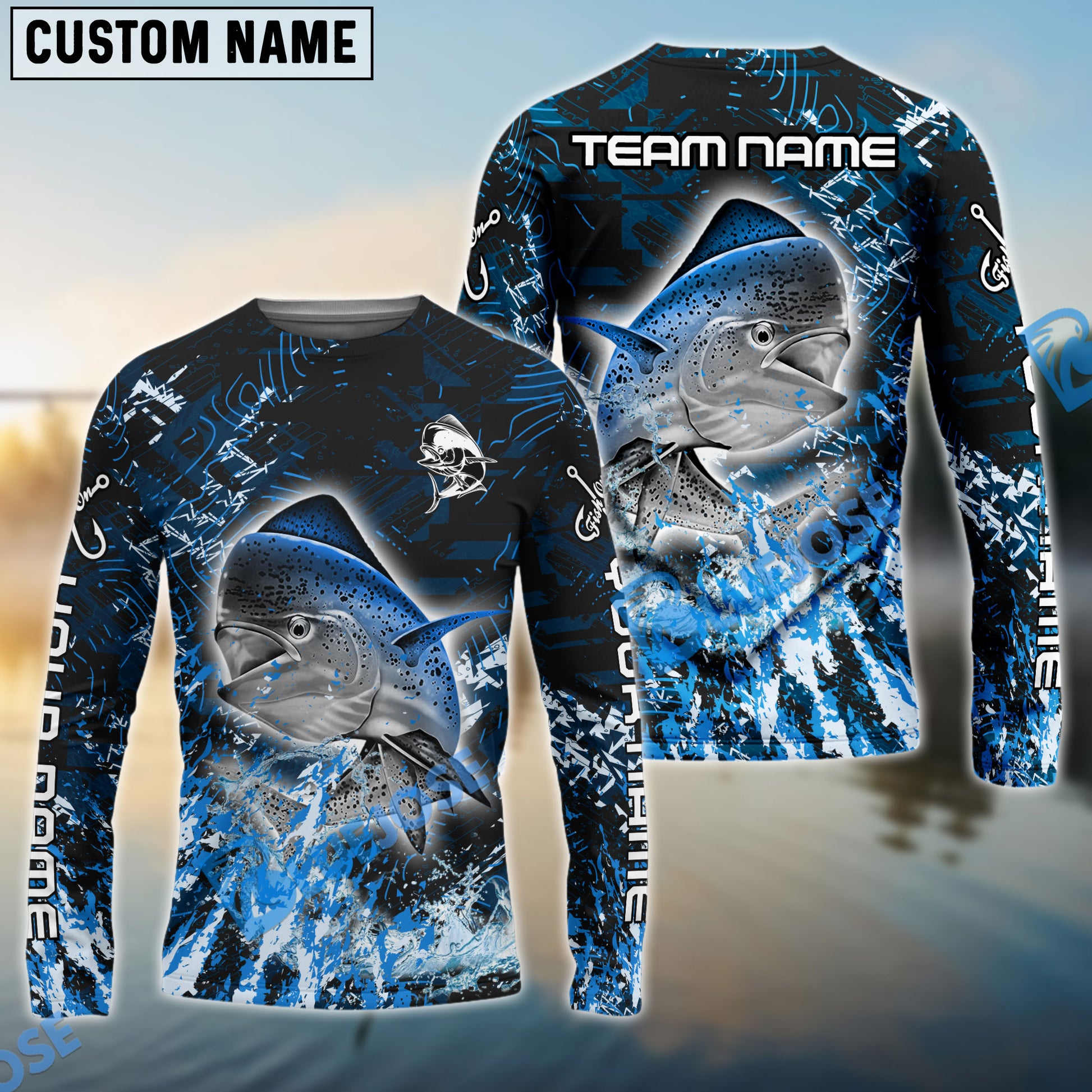 Bluejose Mahi mahi Fishing Dark Grunge Blue Custom Name & Team Name 3D Shirts