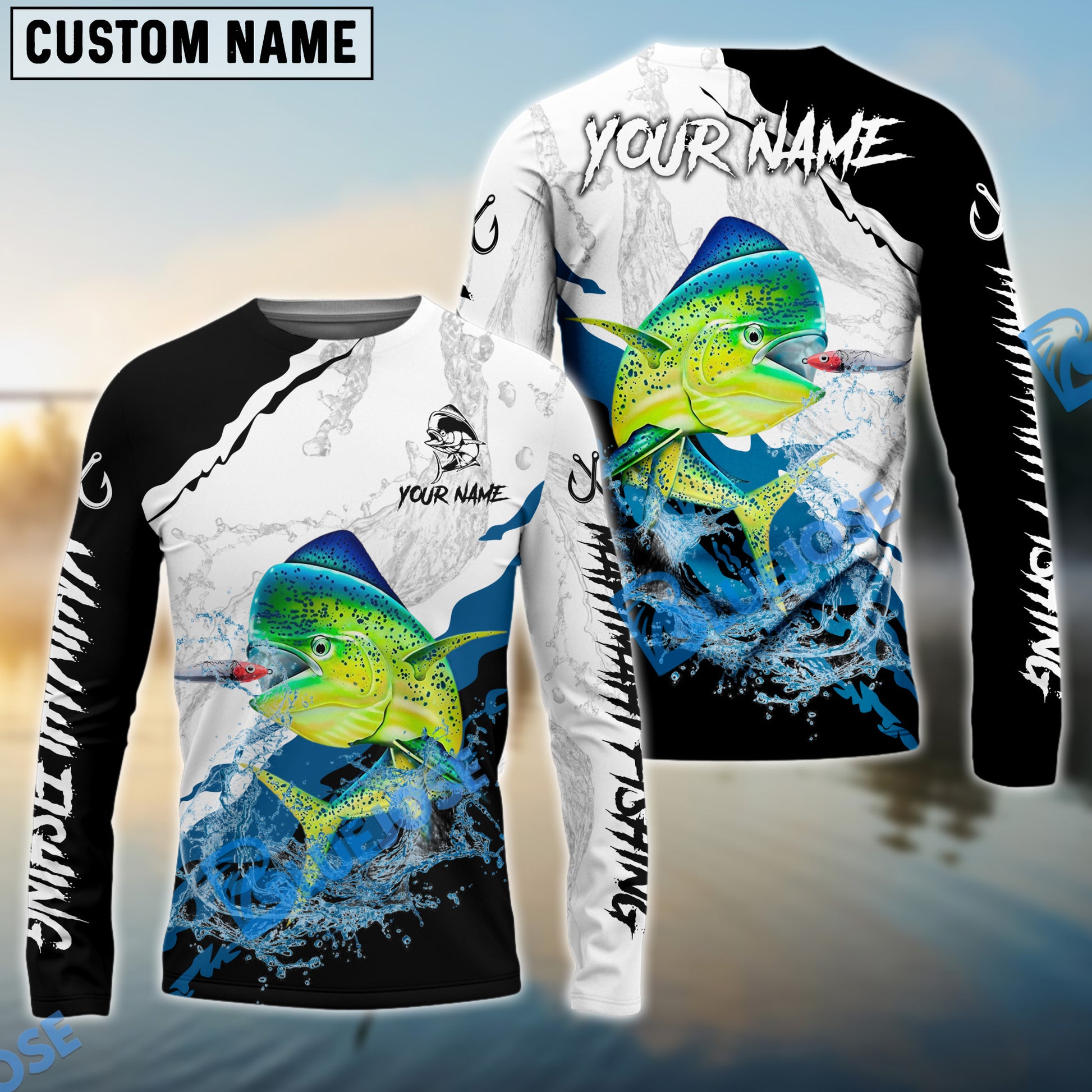Bluejose Mahimahi Fishing Black White Water Flow Custom Name & Team Name 3D Shirts