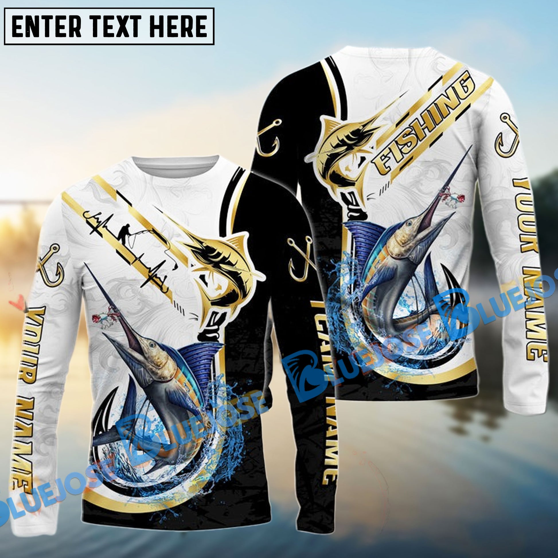 Bluejose Marlin Fishing Black Golden Hook Name & Team Name 3D Shirts