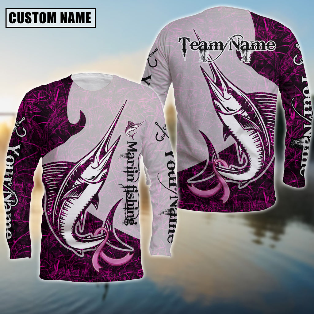 Bluejose Marlin Fishing Breast Cancer Ribbon Pink Camo Custom Name & Team Name 3D Shirts