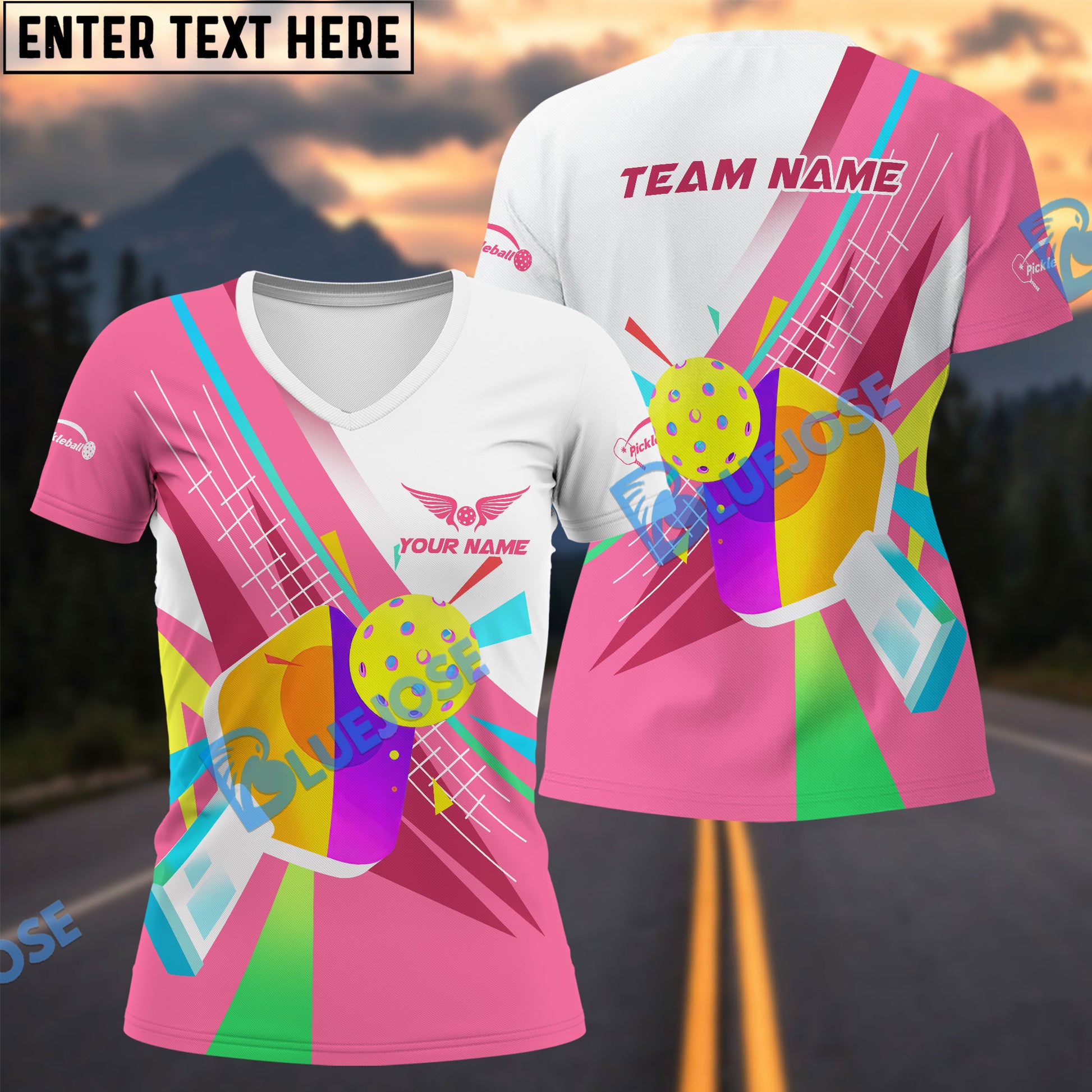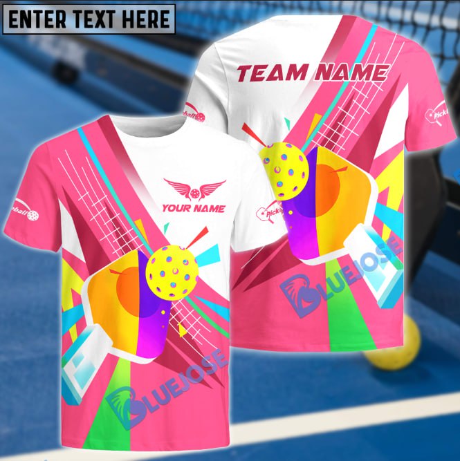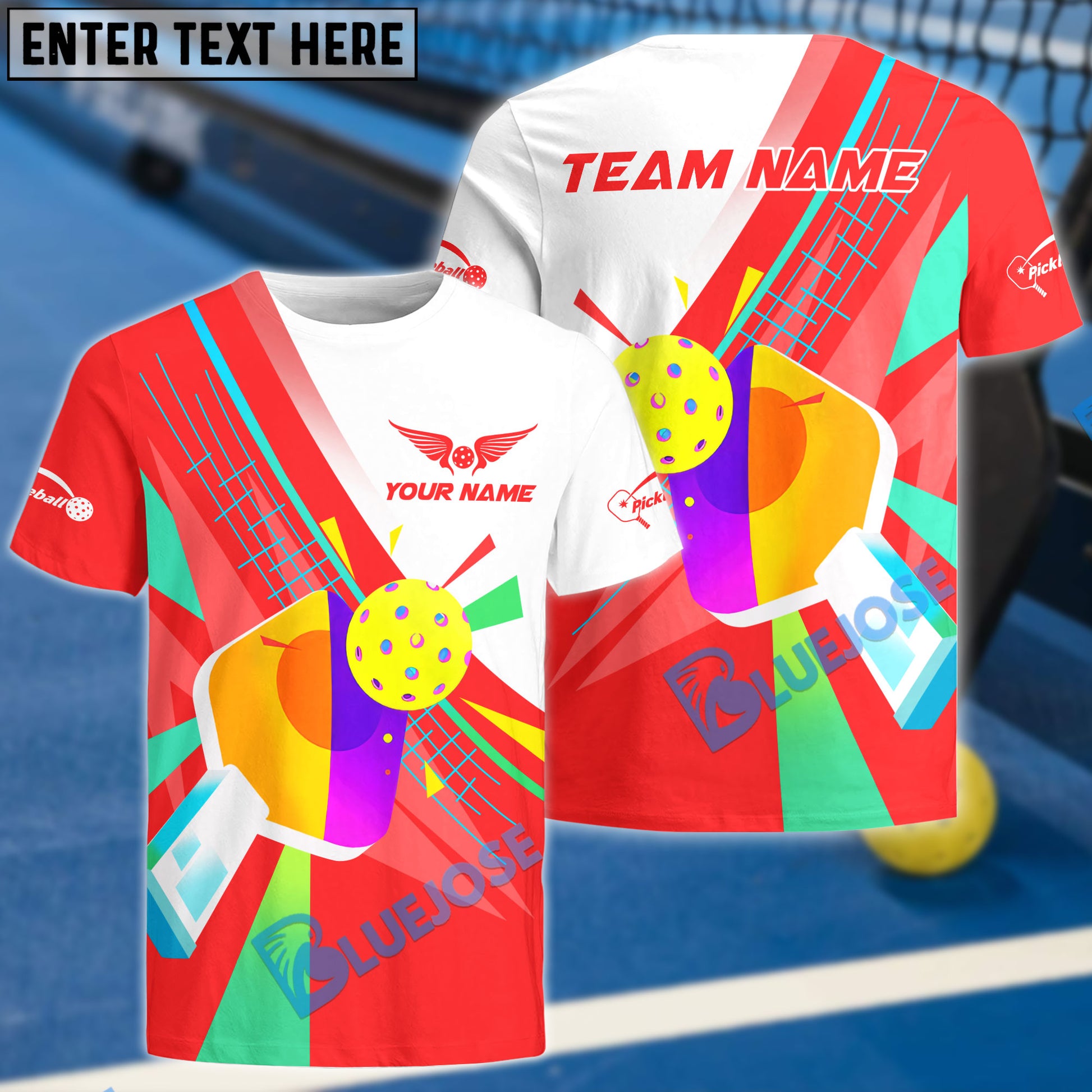 BlueJose Pickleball Colorful Swing Personalized Name, Team Name Unisex Shirt (4 Colors)