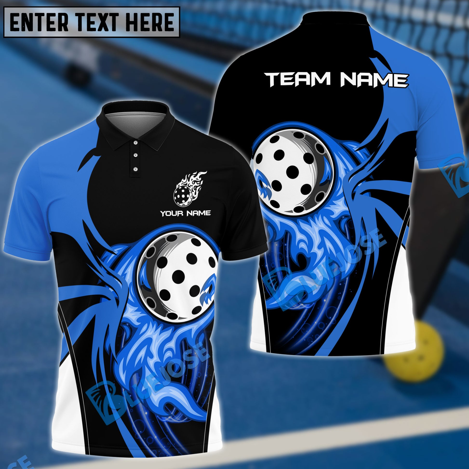 BlueJose Pickleball Curved Flame Personalized Name, Team Name Unisex Shirt (4 Colors)