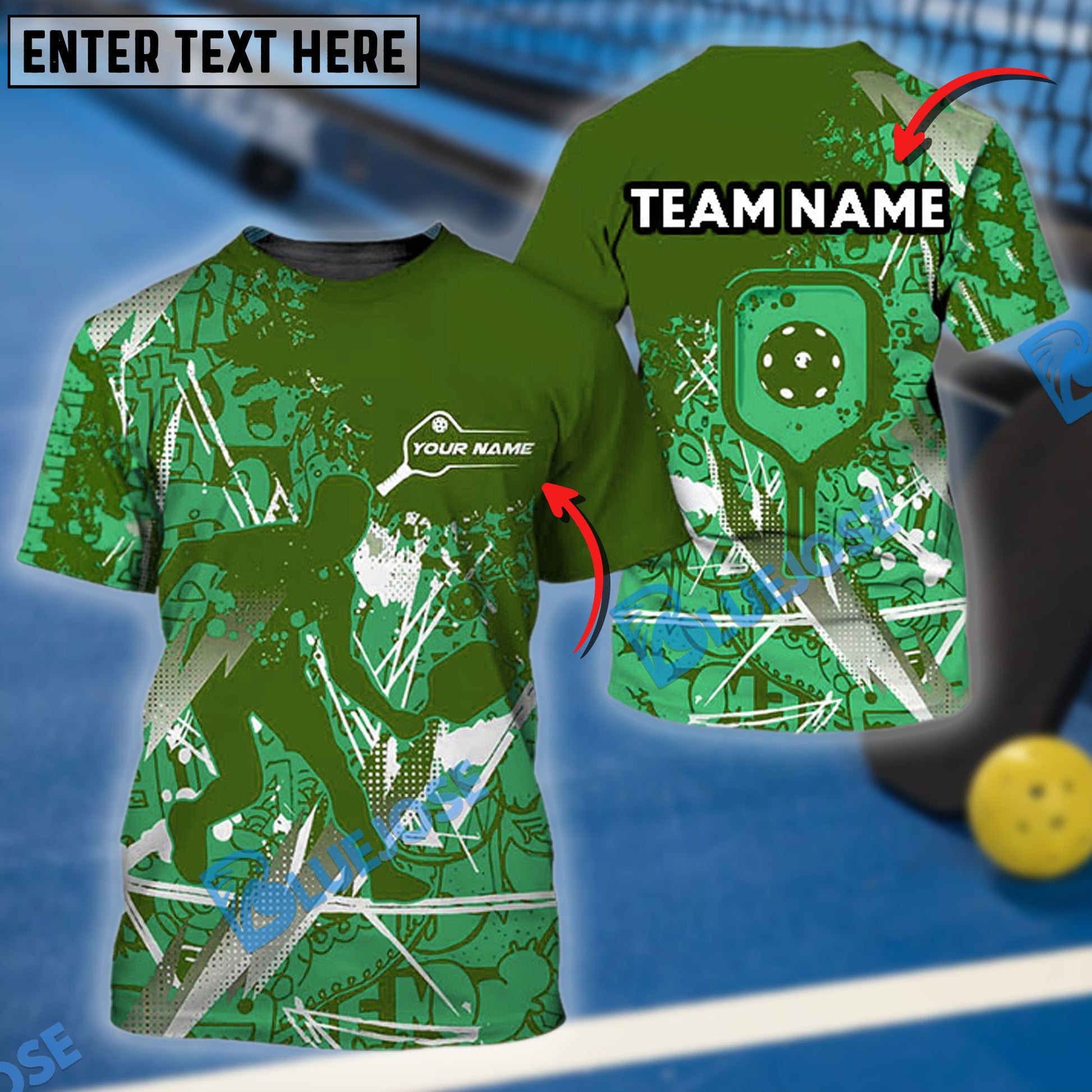 BlueJose Pickleball Sport Style Personalized Name, Team Name Unisex Shirt (4 Colors)