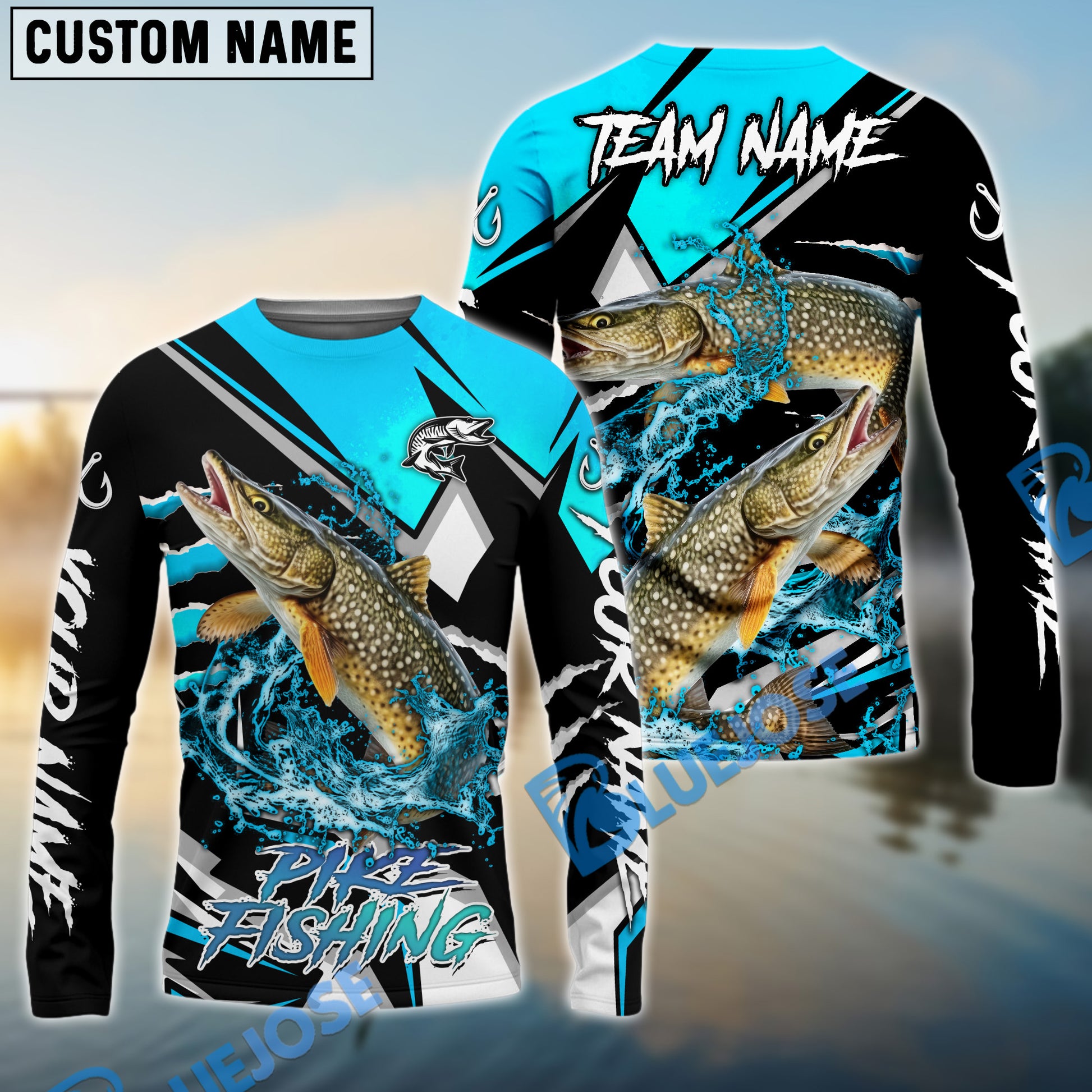 Bluejose Pike Fishing Black Blue Scratch Sport Custom Name & Team Name 3D Shirts