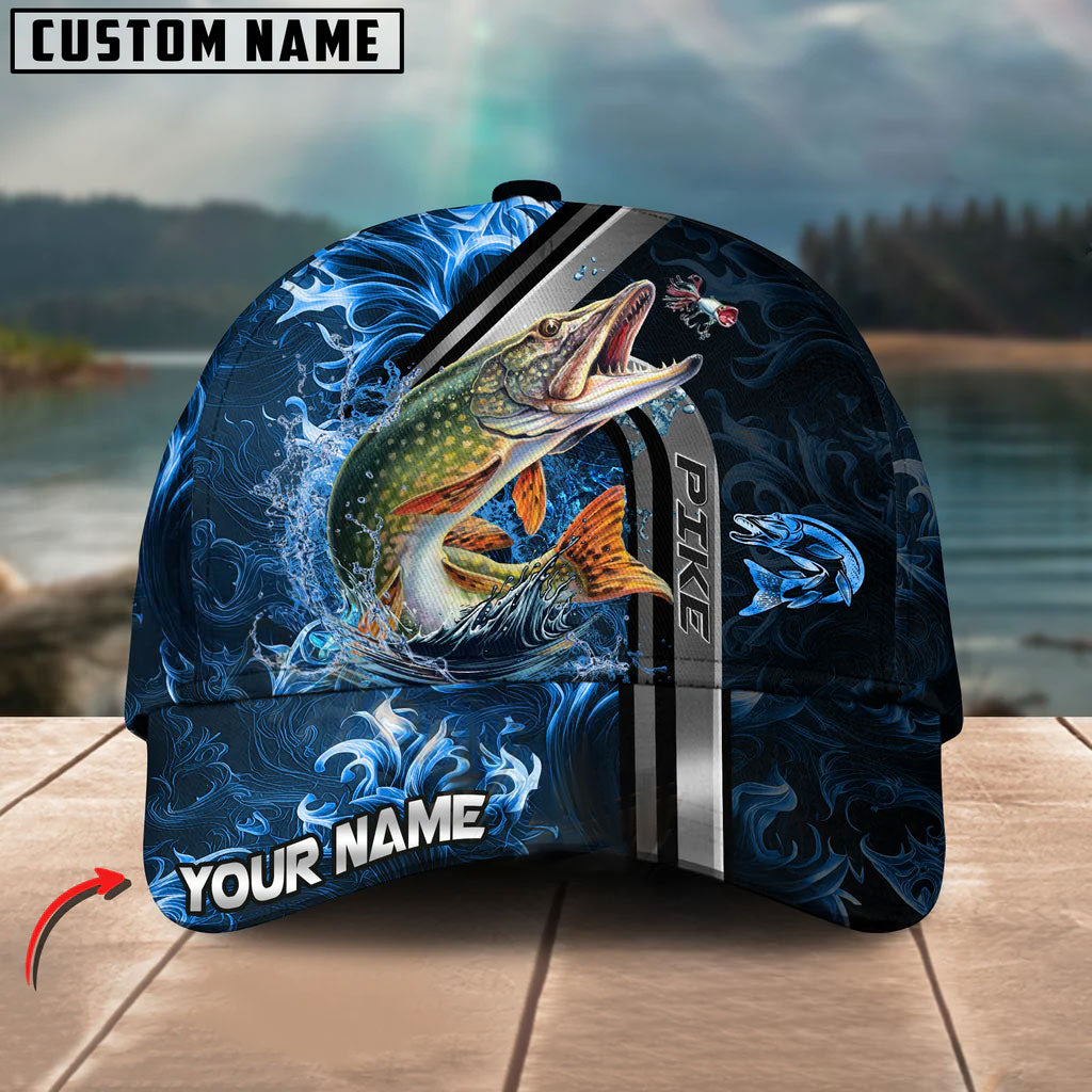 BlueJose Pike Fishing Ocean Wave Power Personalized Cap