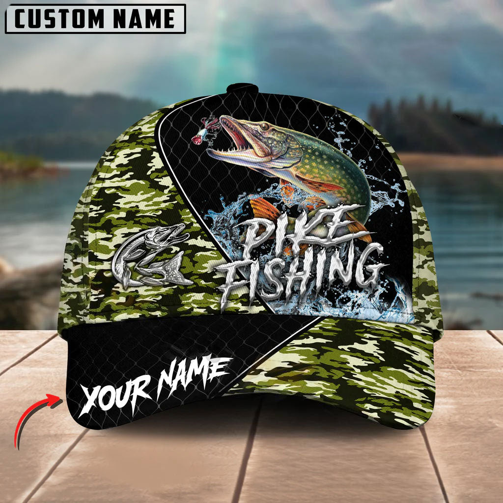 BlueJose Pike Fishing Camo Grid Water Pattern Personalized Cap