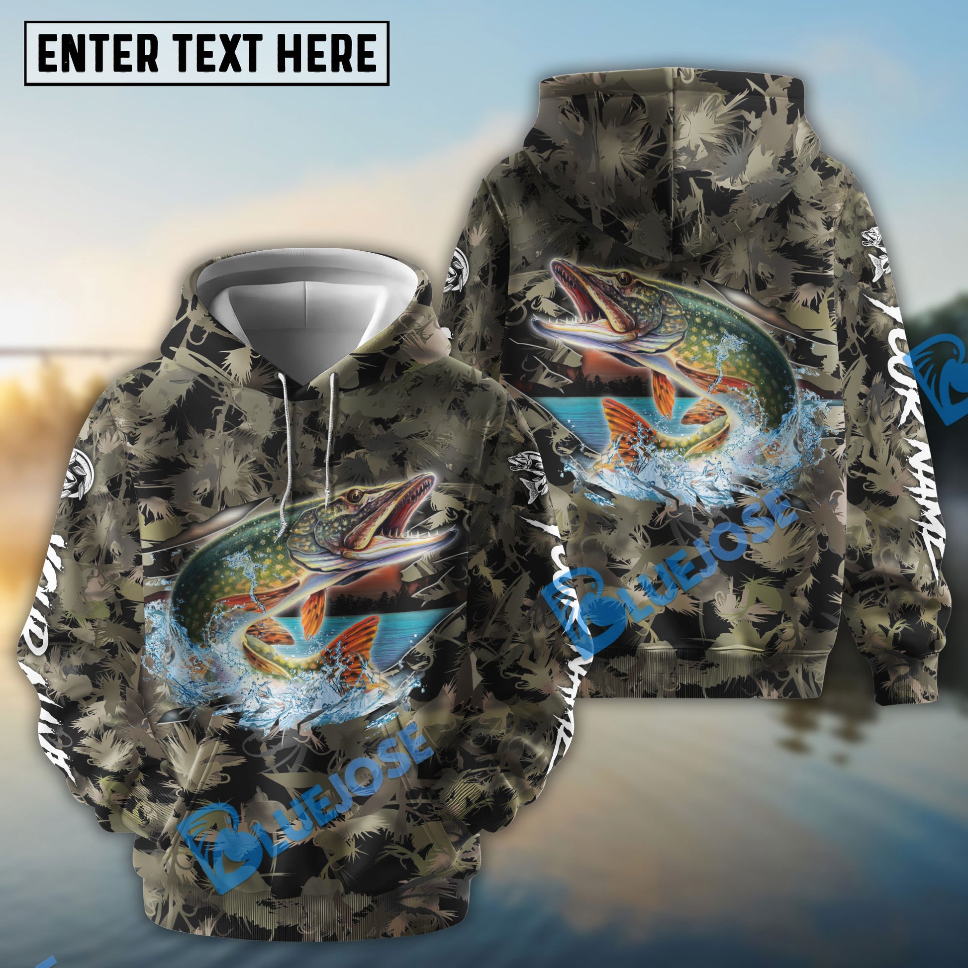Bluejose Pike Fishing Camouflage Custom Name Shirts