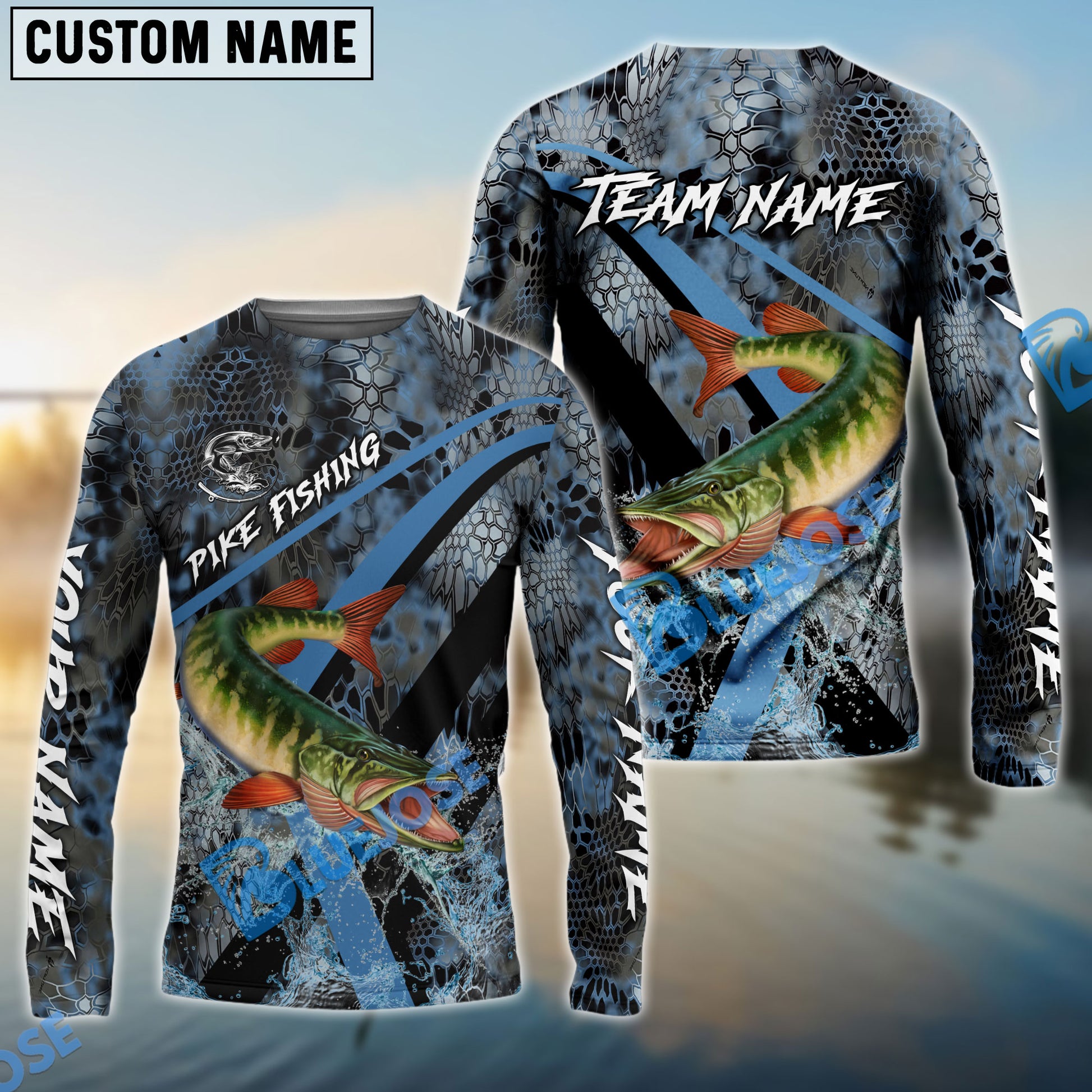 Bluejose Pike Fishing Dark Skin Sport Custom Name & Team Name 3D Shirts