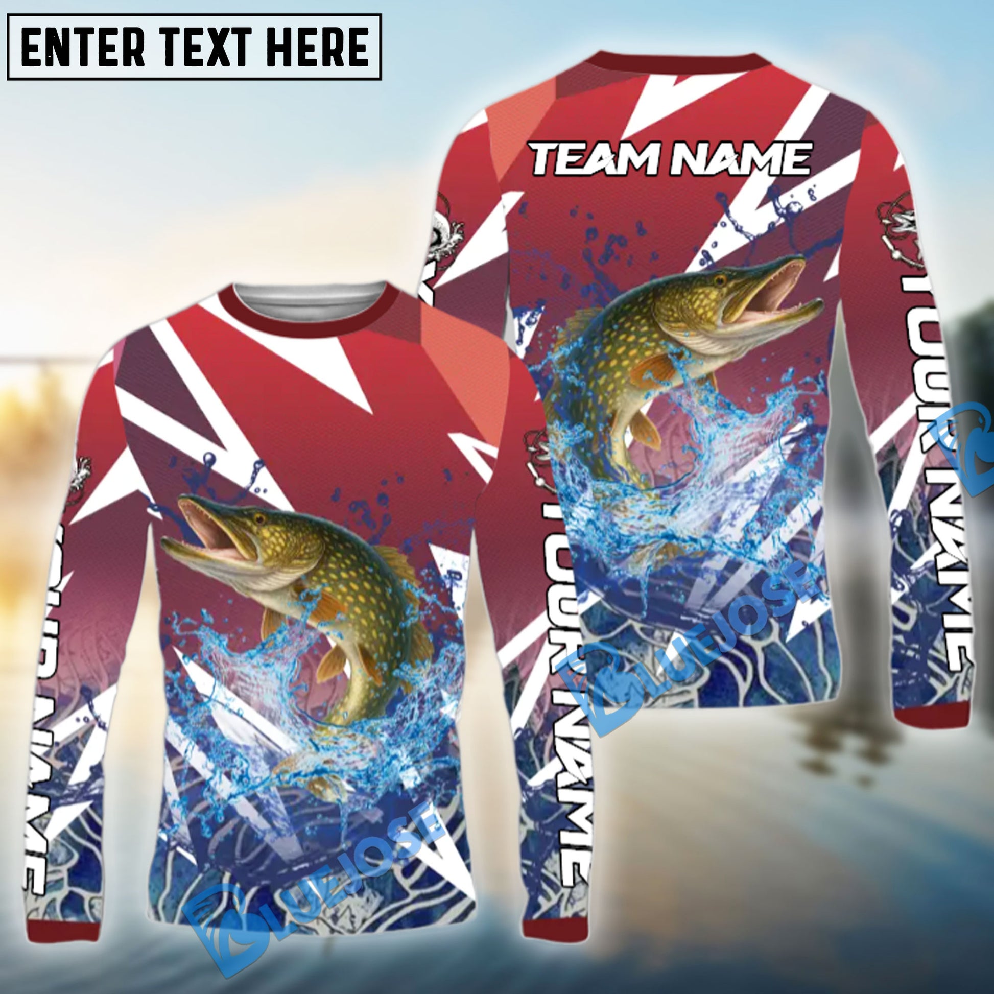 Bluejose Pike Fishing Red Fury Pattern Custom Name & Team Name 3D Shirts