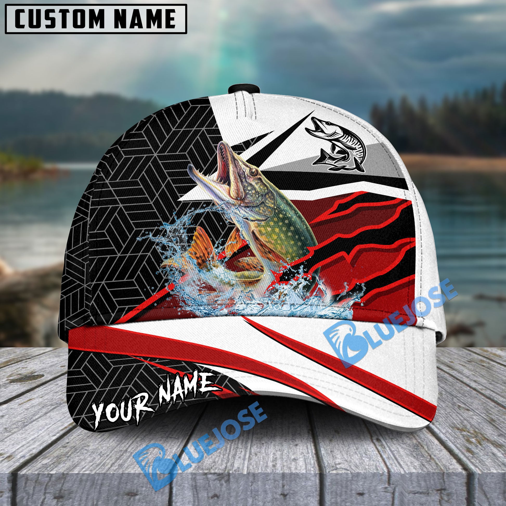 Bluejose Pike Fishing Red White Scratch Sport Personalized Cap