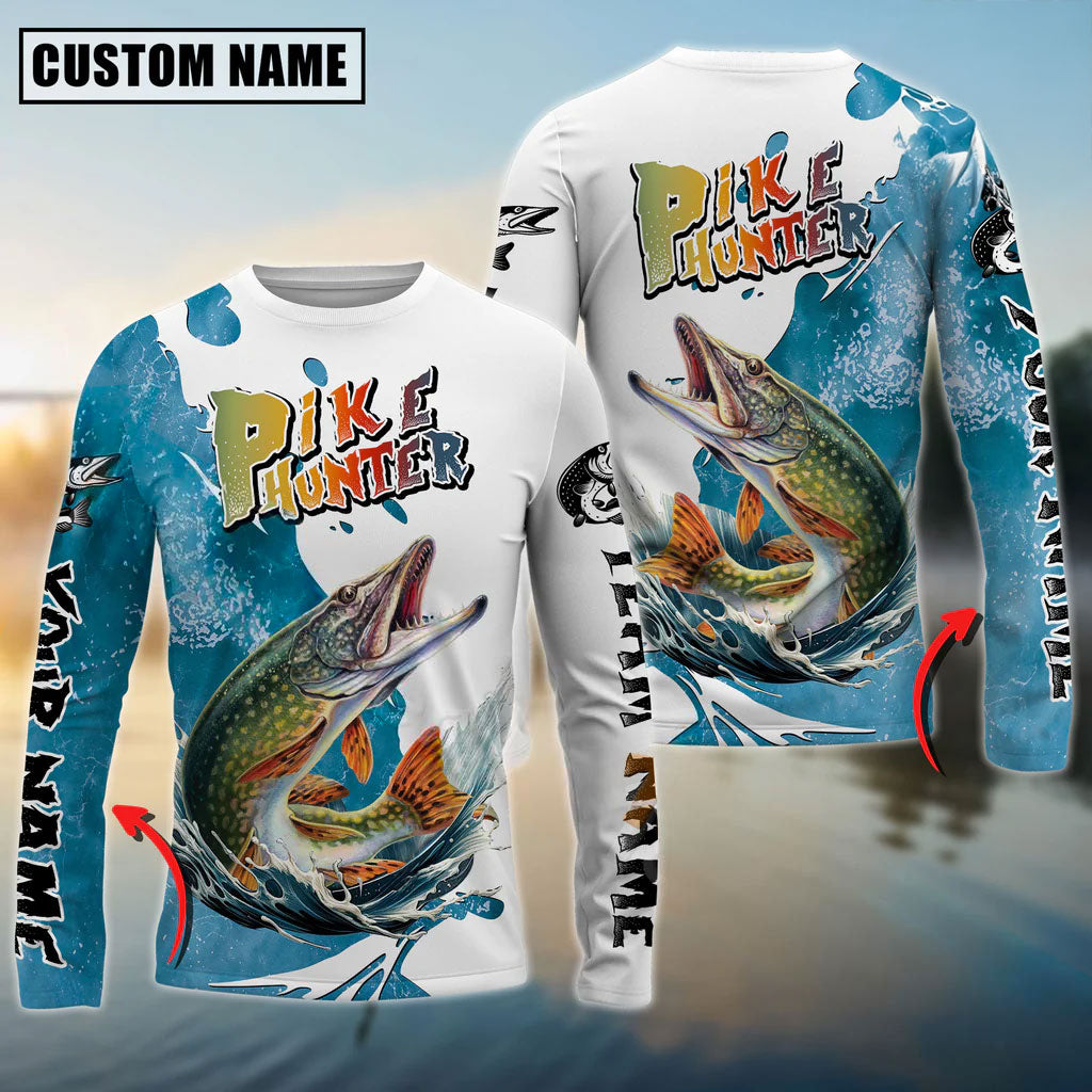 Bluejose Pike Hunter Fishing Graphic Splash Effect Custom Name & Team Name 3D Shirts