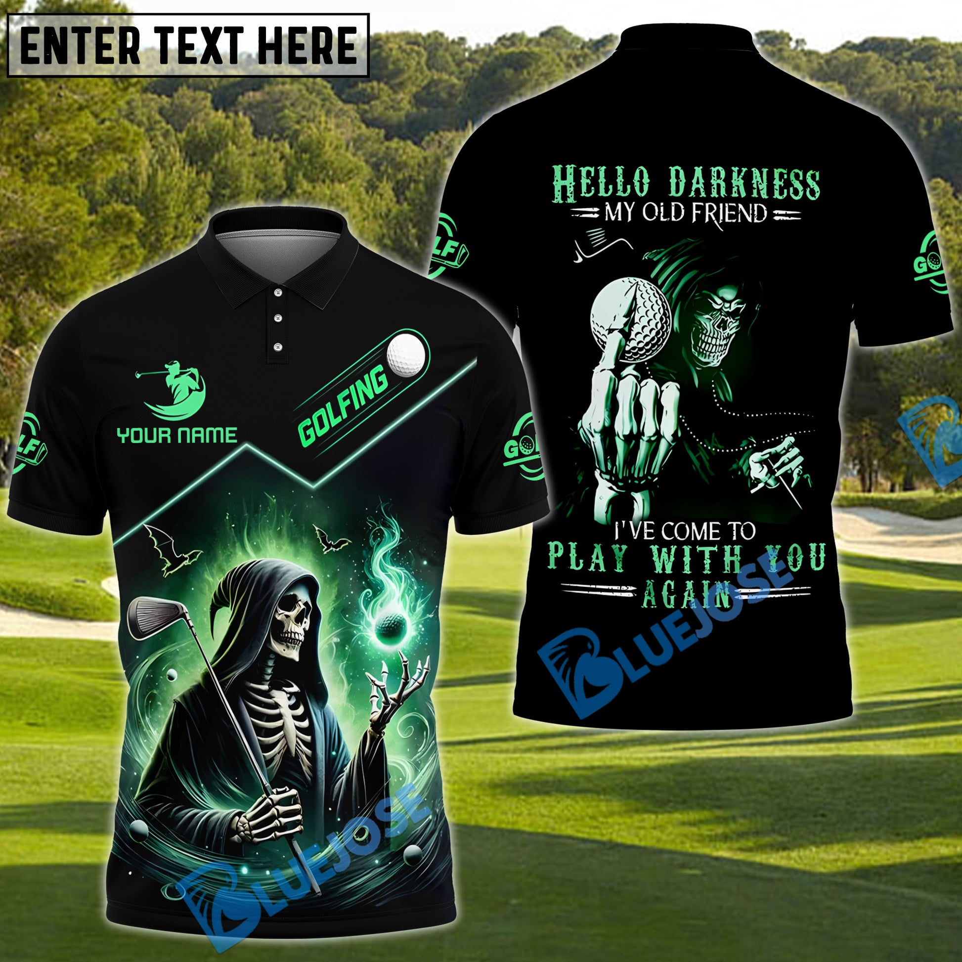 BlueJose Grim Reaper Golf Shirt – "Hello Darkness" Custom Name, Team Name 3D Shirts