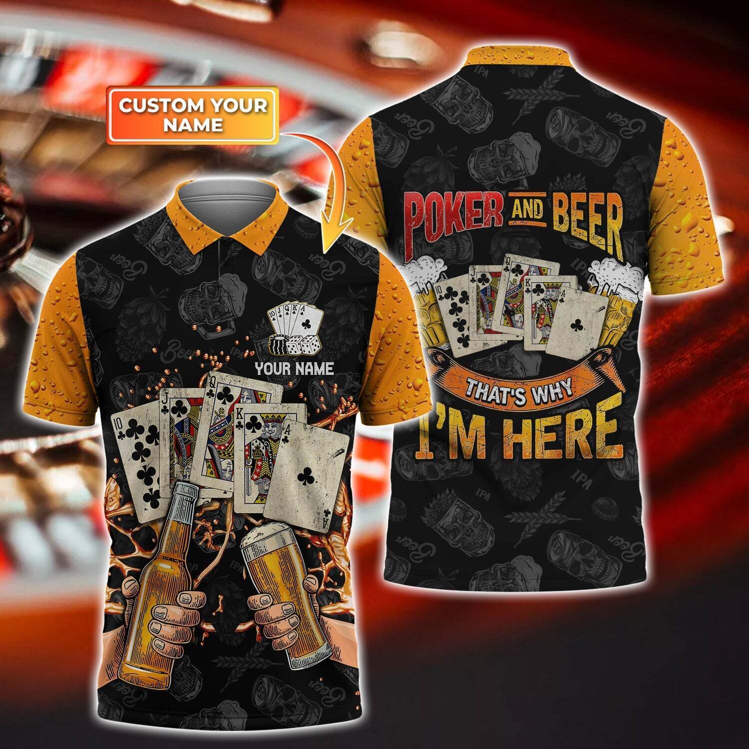 BlueJose Poker And Beer Personalized Name 3D Polo Shirt