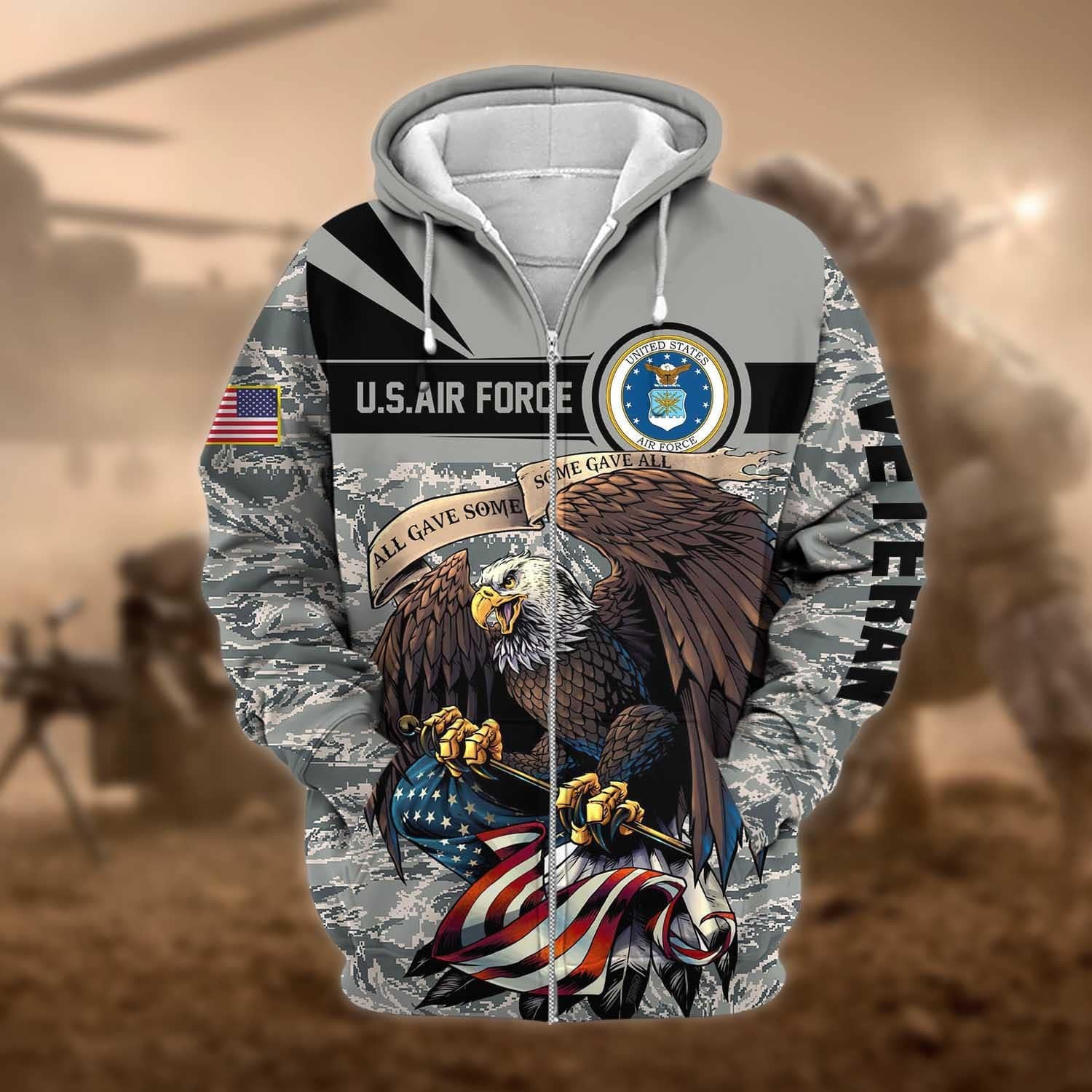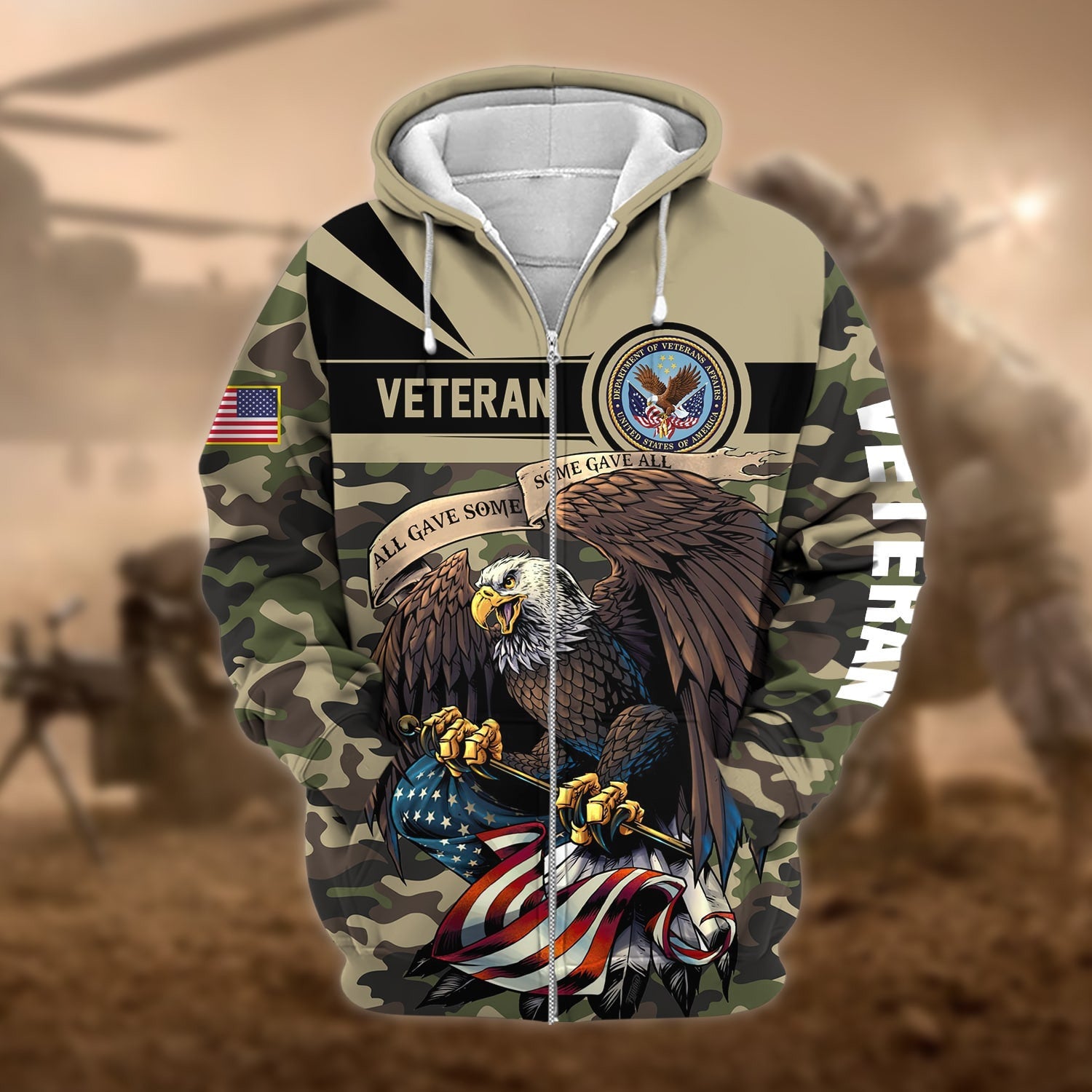 BlueJose Premium Camo Soldiers Multiservice US Veteran Zip Hoodie