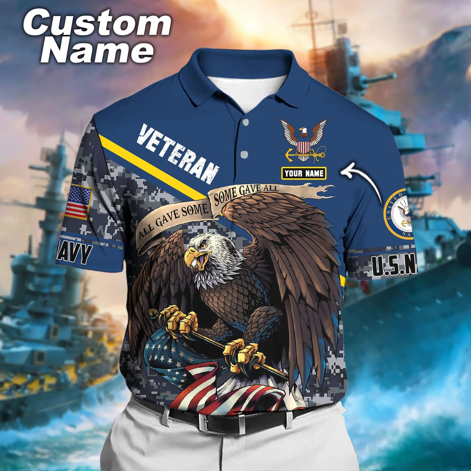 BlueJose Premium Personalised U.S Multiple Service Veteran Polo Shirt