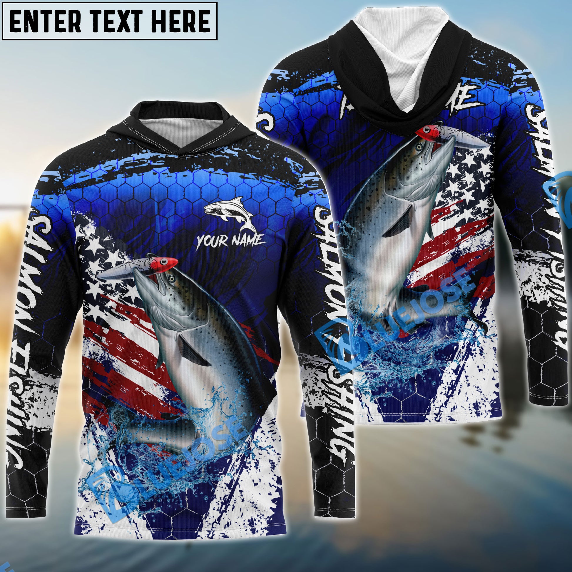 Bluejose Salmon Fishing Dark Blue Scratch American Flag scratch Sport Custom Name & Team Name 3D Shirts