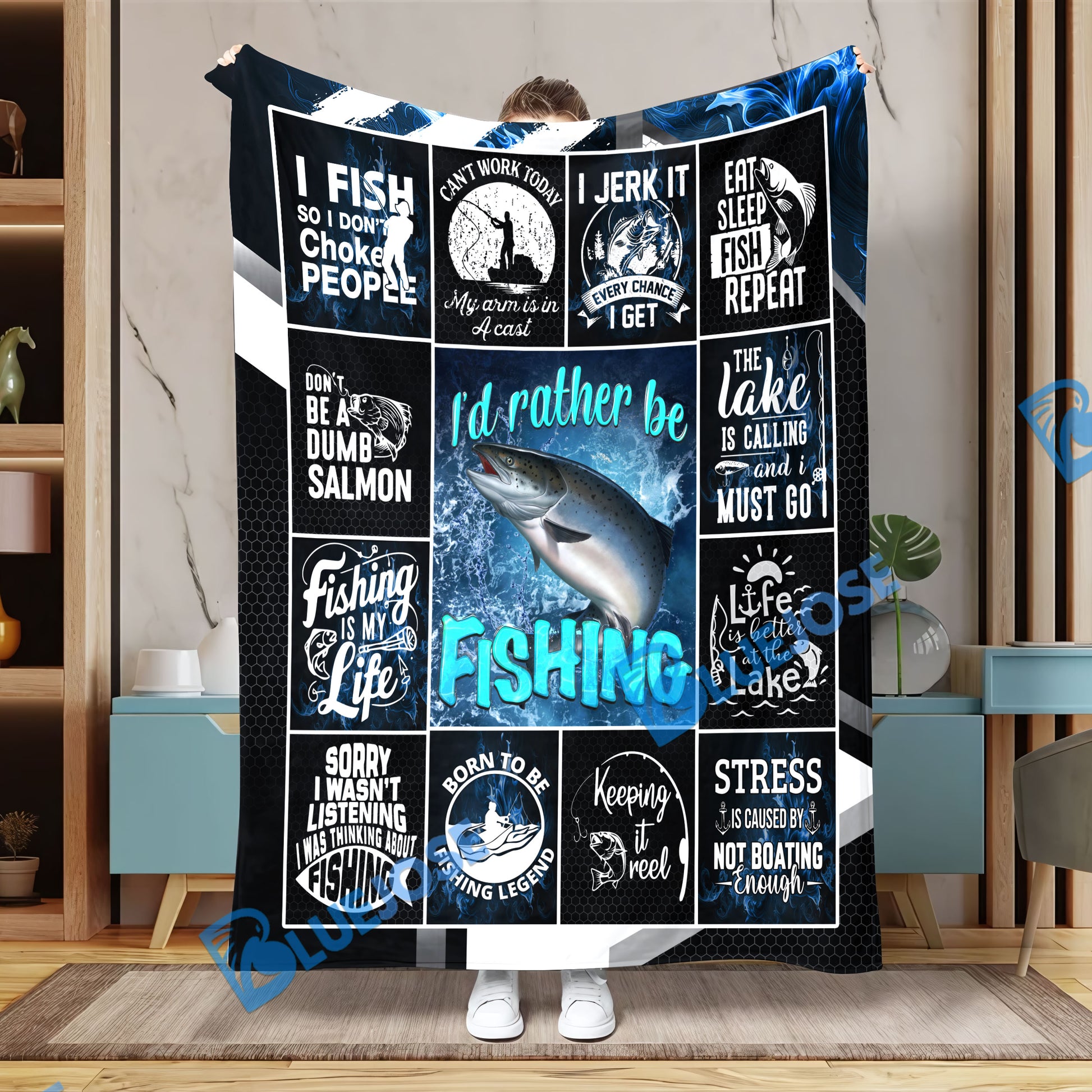 BlueJose Salmon Fishing Lovers Rather Be Blanket