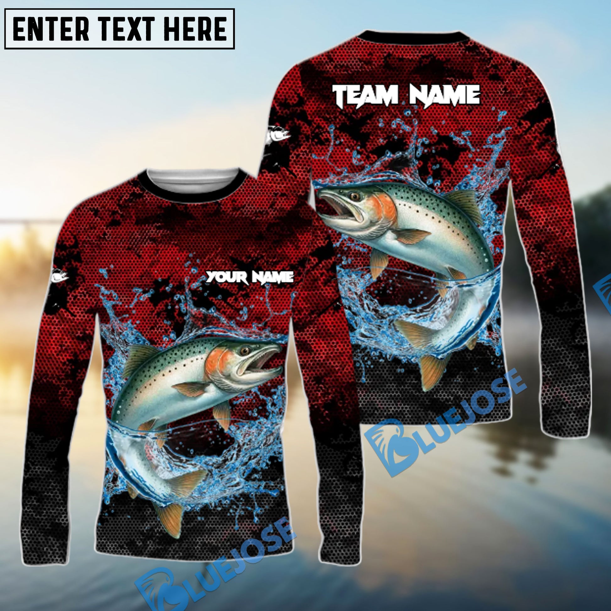 Bluejose Salmon Fishing Red Grunge Camo Design Name & Team Name 3D Shirts