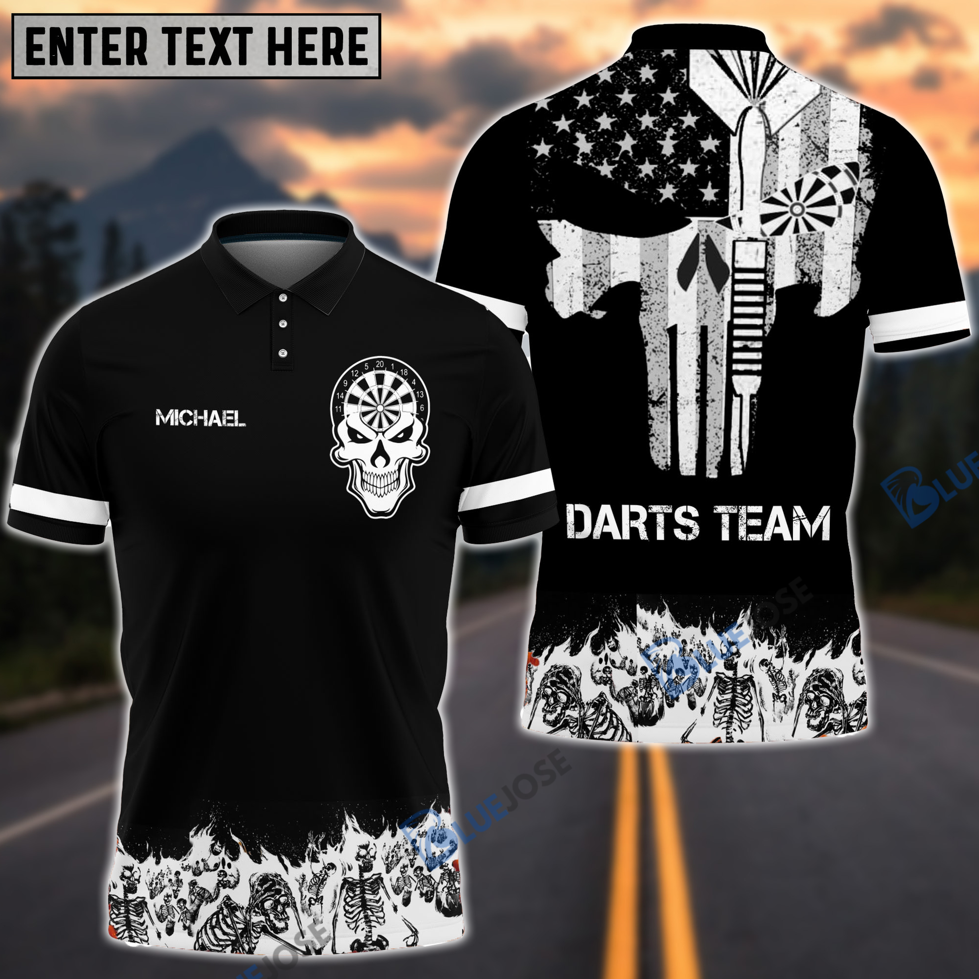 BlueJose Skull Eyes Darts Personalized Name, Team Name Shirt