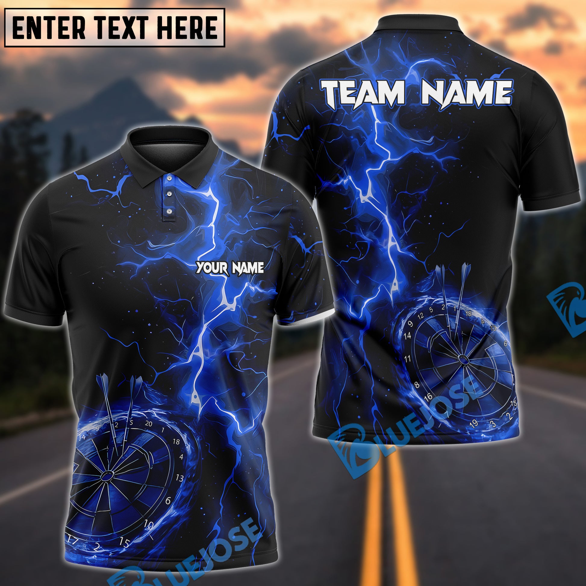 BlueJose Striking Lightning Design Pro Darts Tournament Multicolor Options Personalized Name Shirt (4 Colors)
