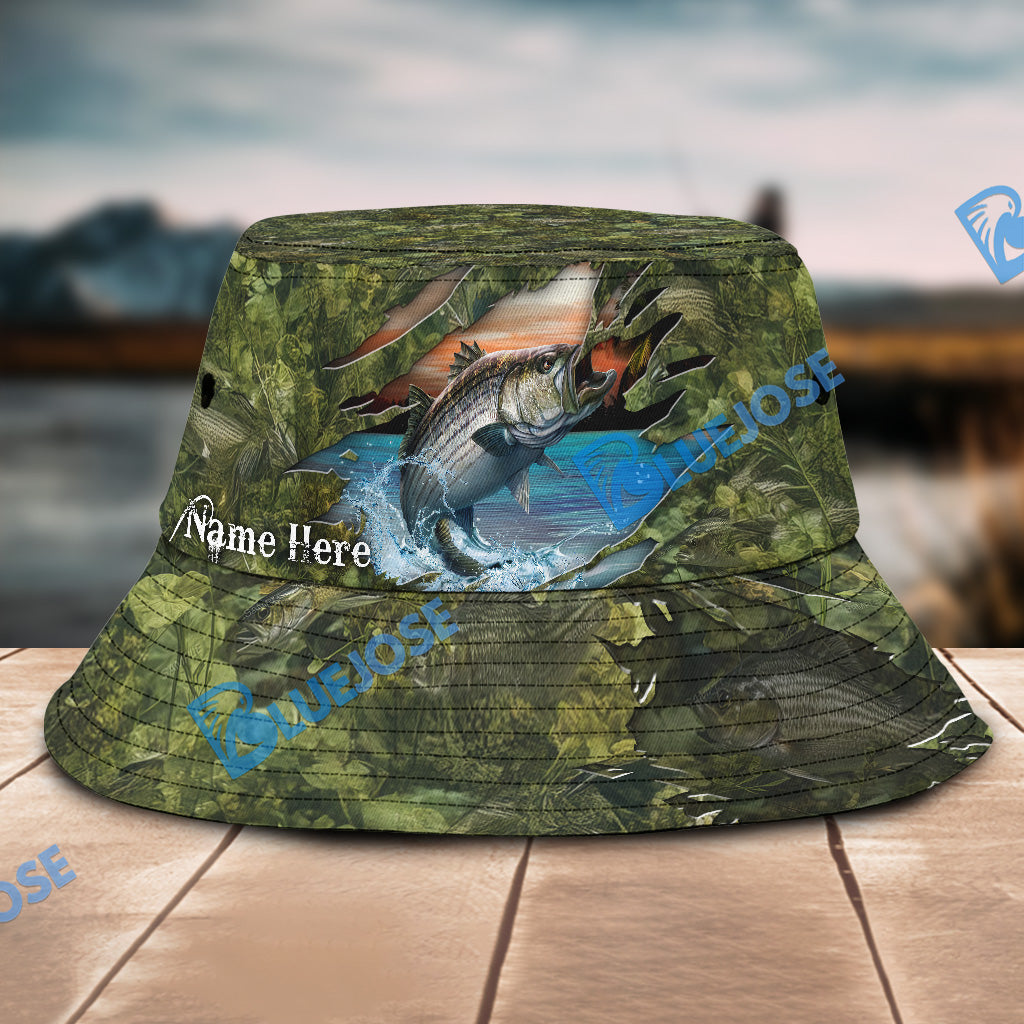 BlueJose Striped Bass Camouflage Custom Name Bucket Hat