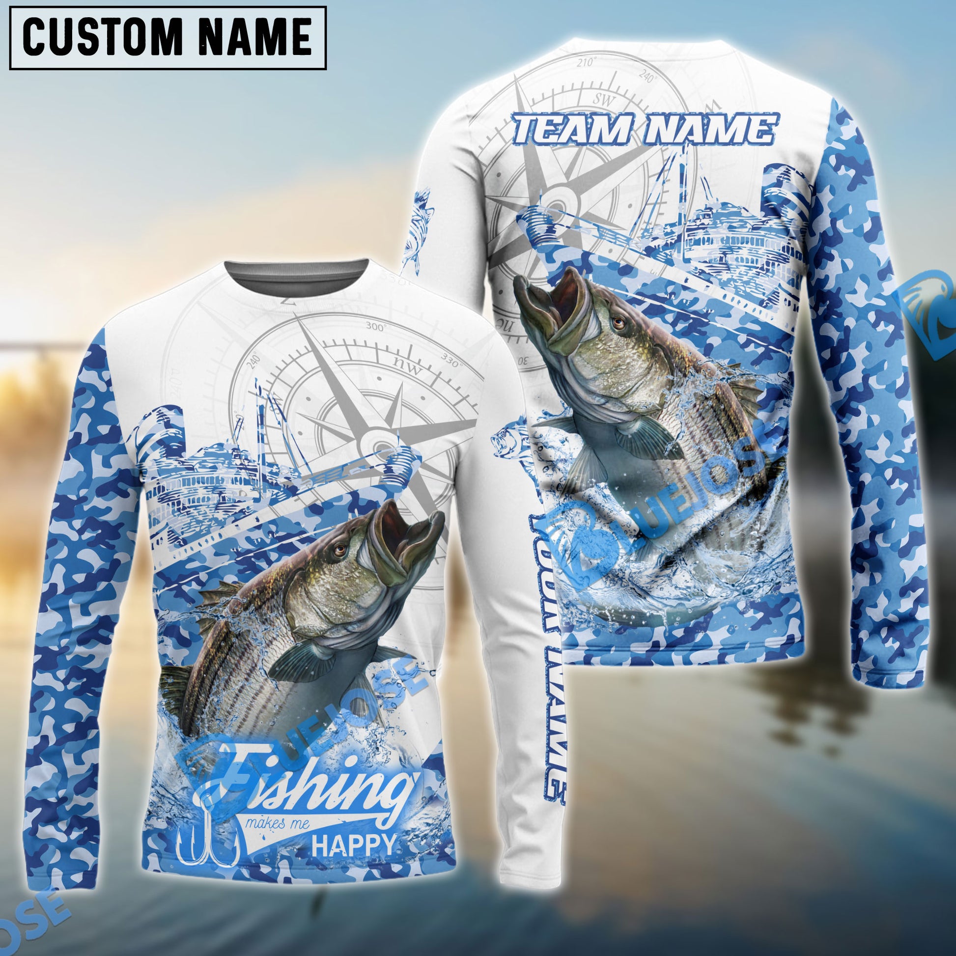 Bluejose Striped Bass Fishing Blue Camouflage Compass Hook Design Pattern Custom Name & Team Name 3D Shirts