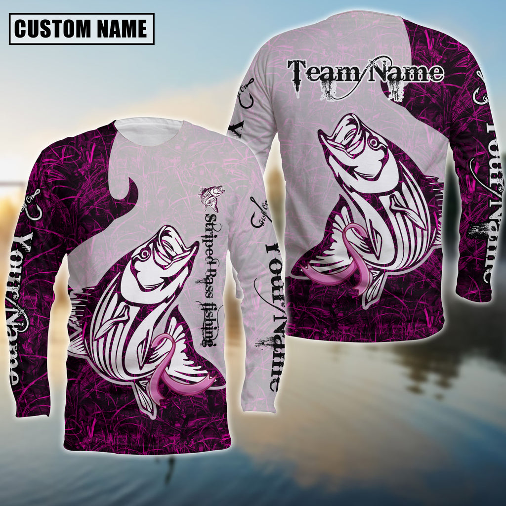 Bluejose Striped Bass Fishing Breast Cancer Ribbon Pink Camo Custom Name & Team Name 3D Shirts