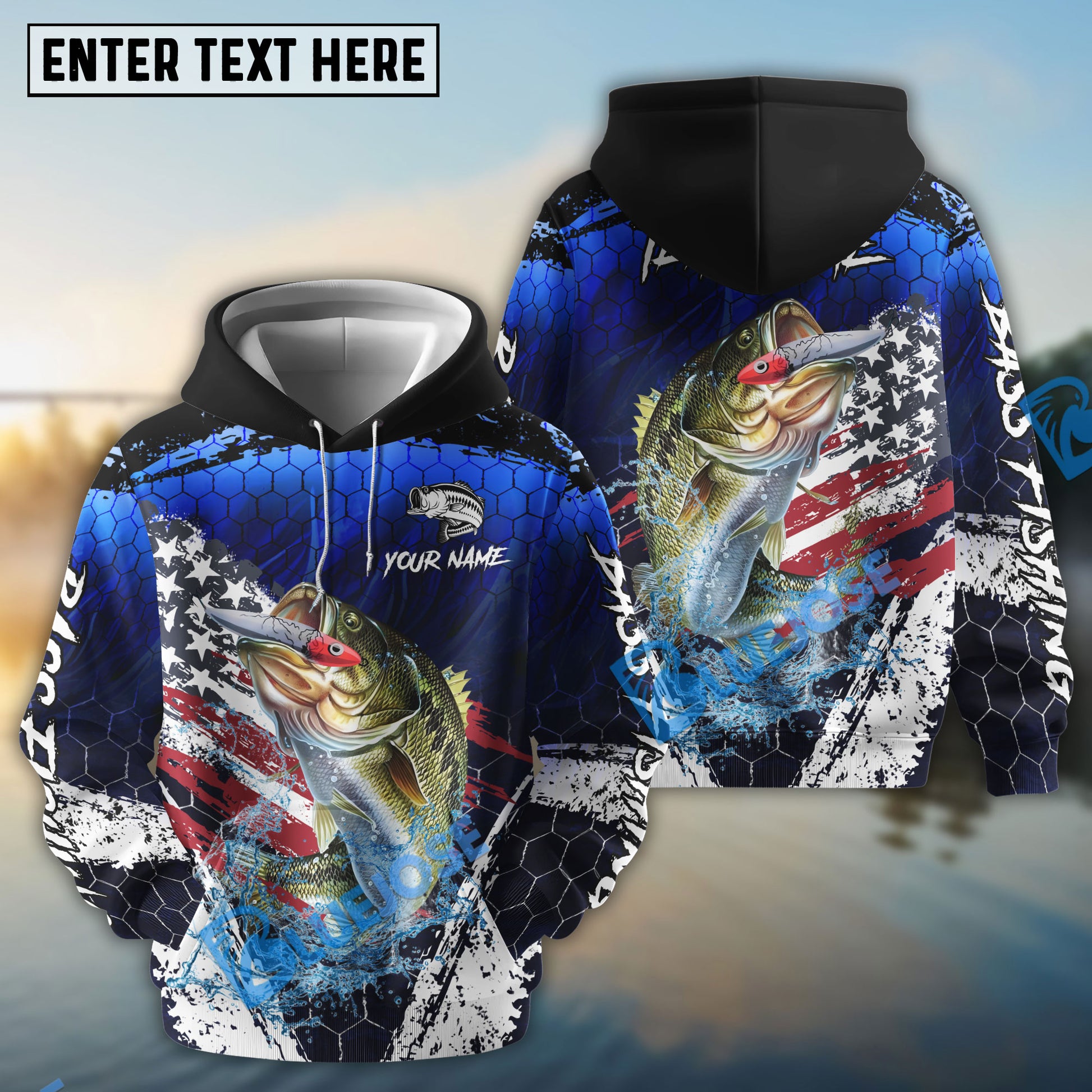 Bluejose Striped Bass Fishing Dark Blue Scratch American Flag scratch Sport Custom Name & Team Name 3D Shirts