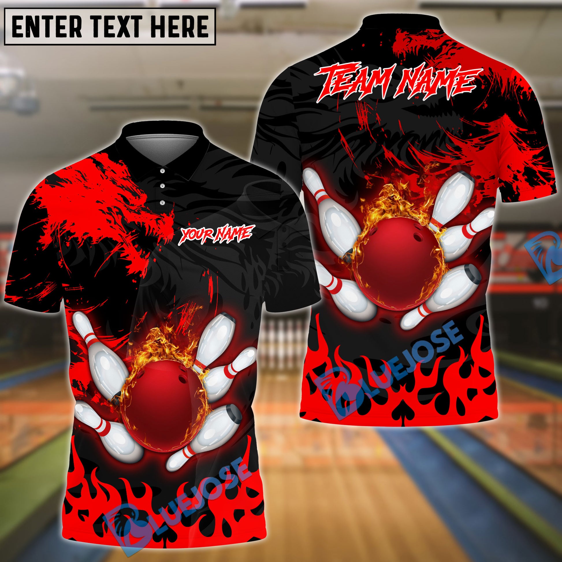 BlueJose The Dragon & Fire and Bowling Personalized Name, Team Name 3D Shirt (5 Colors)