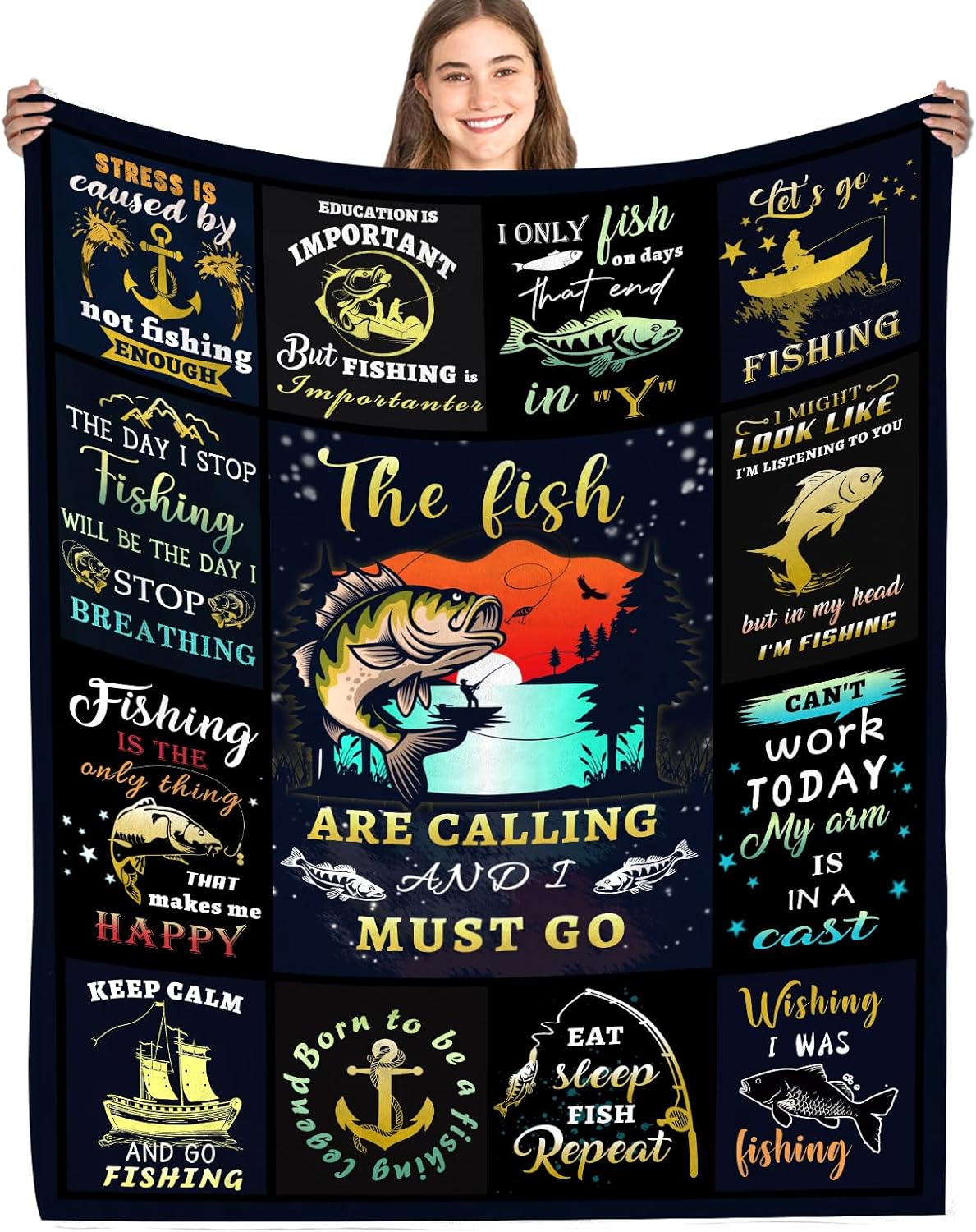 BlueJose The Fish Are Calling And I Must Go Fishing Blanket