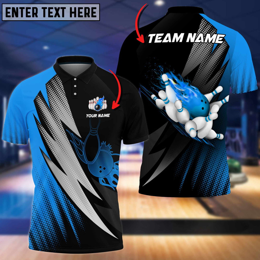 BlueJose Thunder Polka Dot Motifs Bowling Personalized Name, Team Name 3D Shirt (4 Colors), Personalized Shirts For Bowling Players