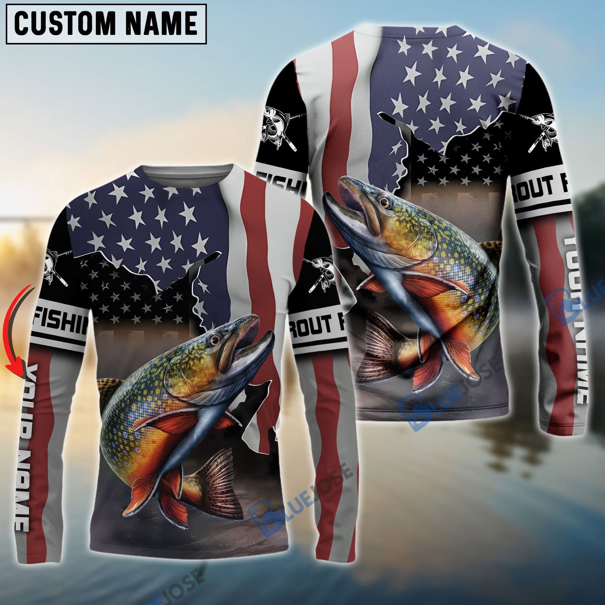 Bluejose Trout Fishing American Flag Fishing Long Sleeves