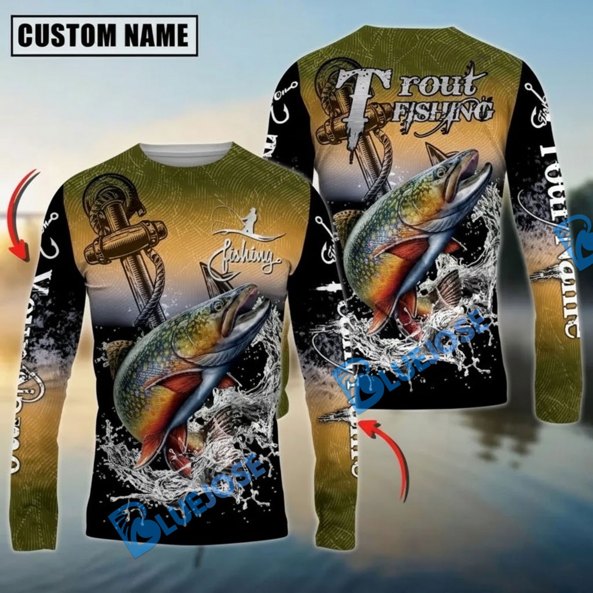 Bluejose Trout Fishing Anchor Design Custom Name & Team Name 3D Shirts