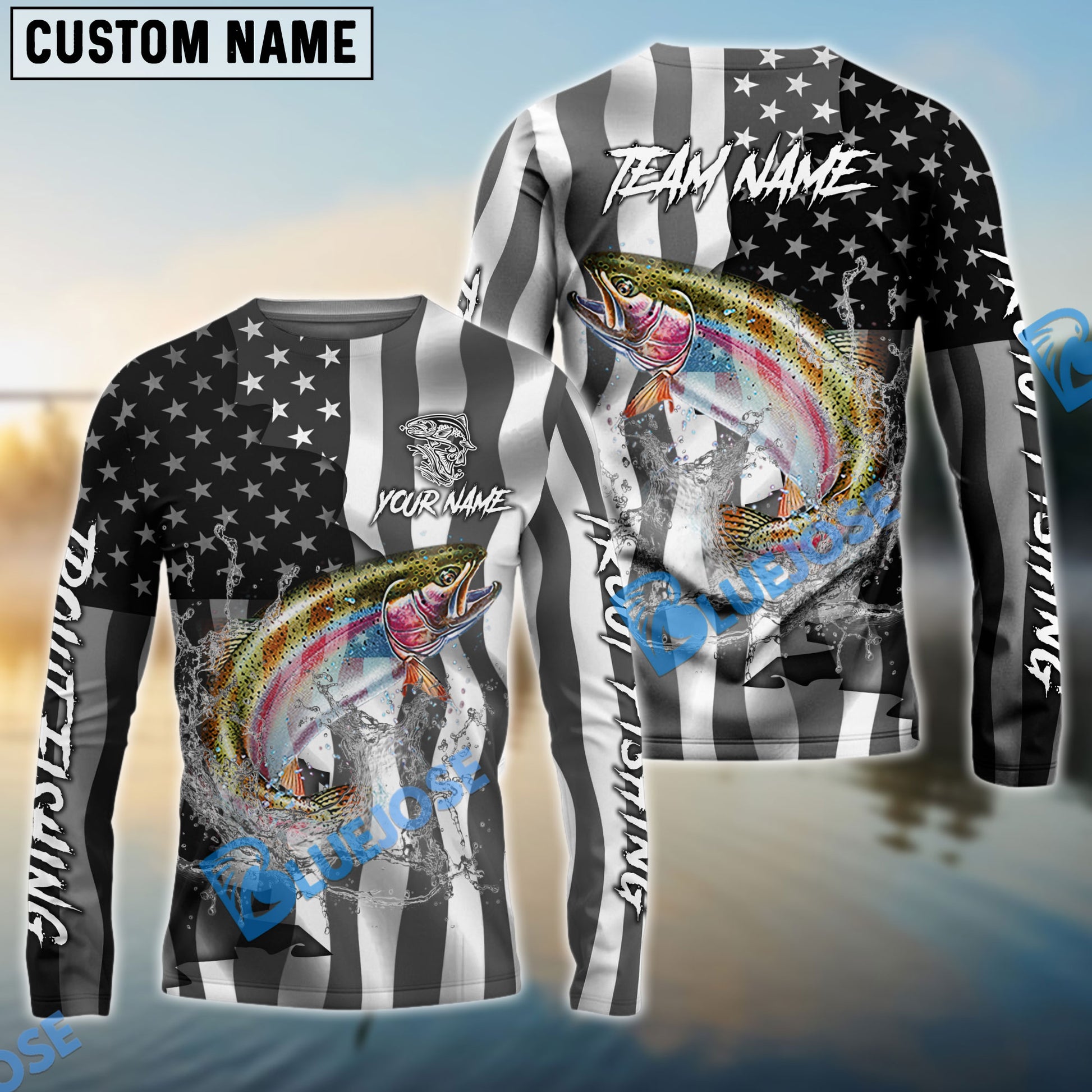 Bluejose Trout Fishing Black American Flag Sport Custom Name & Team Name 3D Shirts