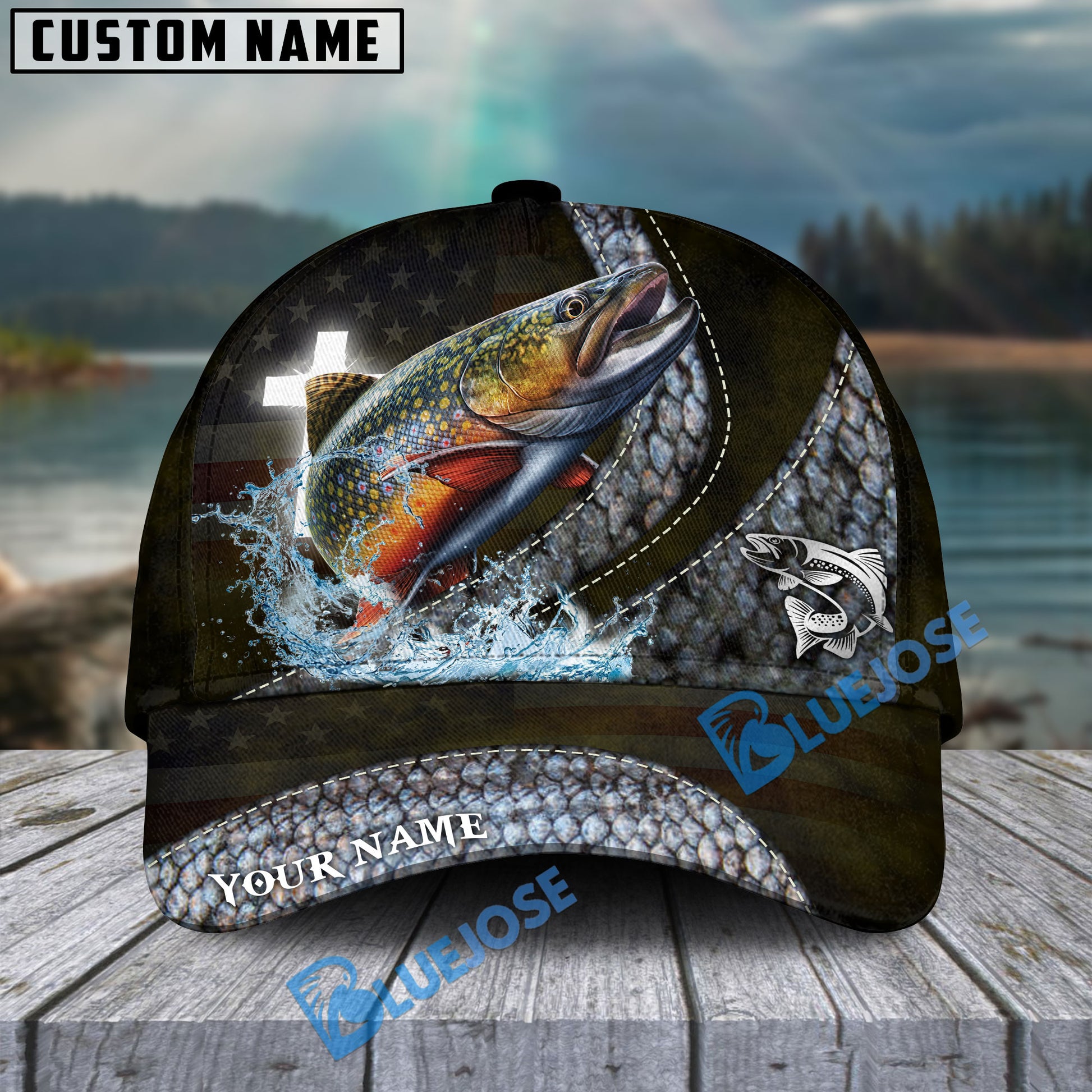 Bluejose Trout Fishing Cross American Skinfish Pattern Personalized Cap