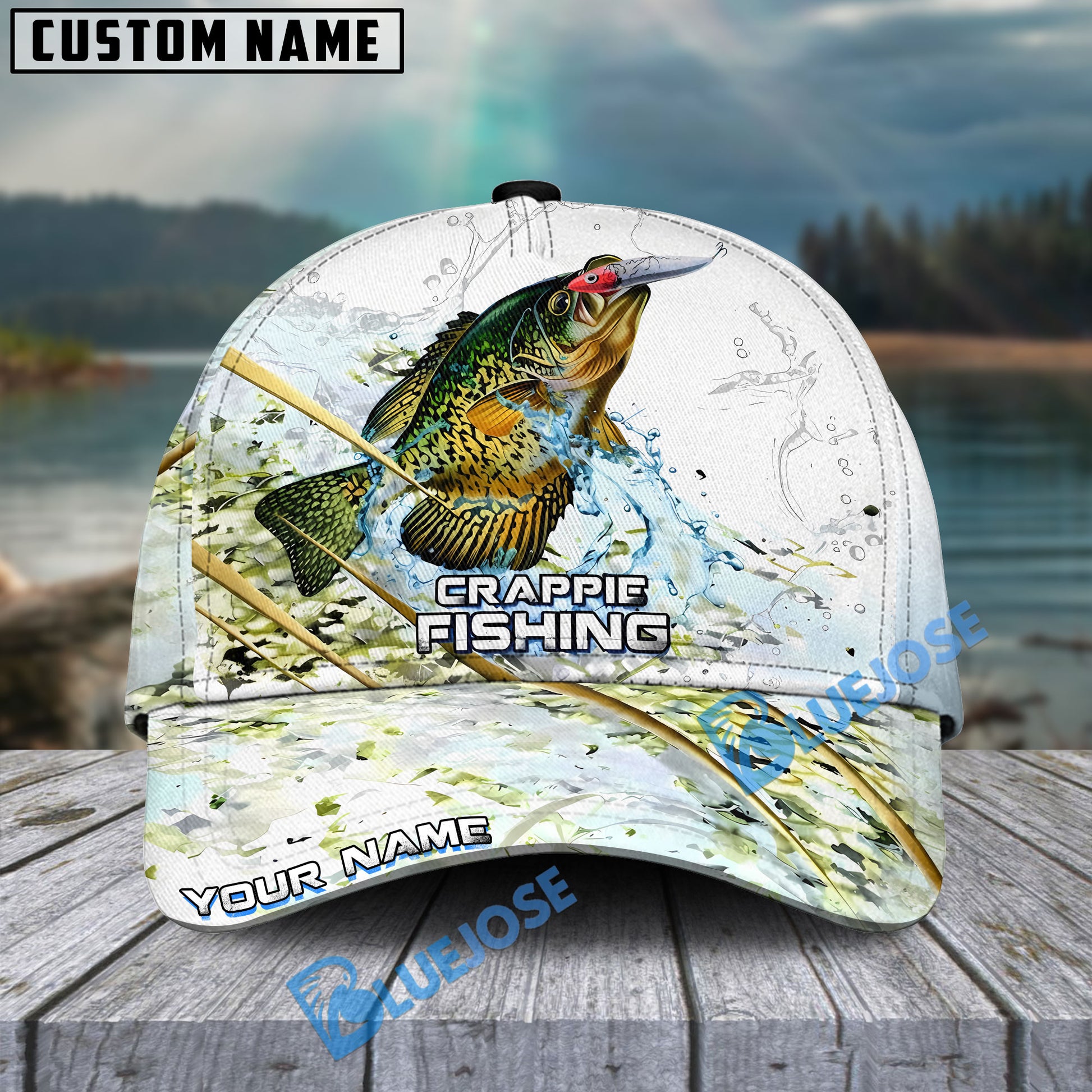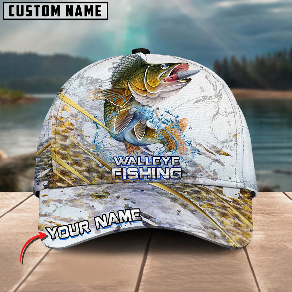 BlueJose Fishing Gold Premium Skinfish Pattern Personalized Cap (Bass, Trout, Walleye, Mahi-Mahi, Striped Bass, Crappie, Pike, Salmon)