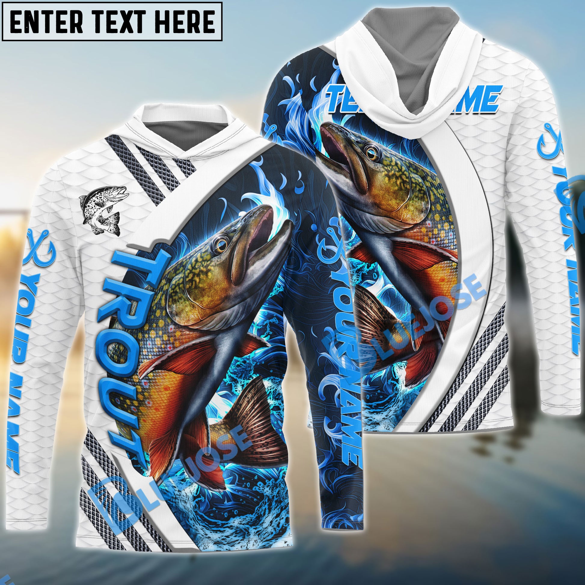 Bluejose Trout Fishing White Blue Lava Sport Custom Name & Team Name 3D Shirts