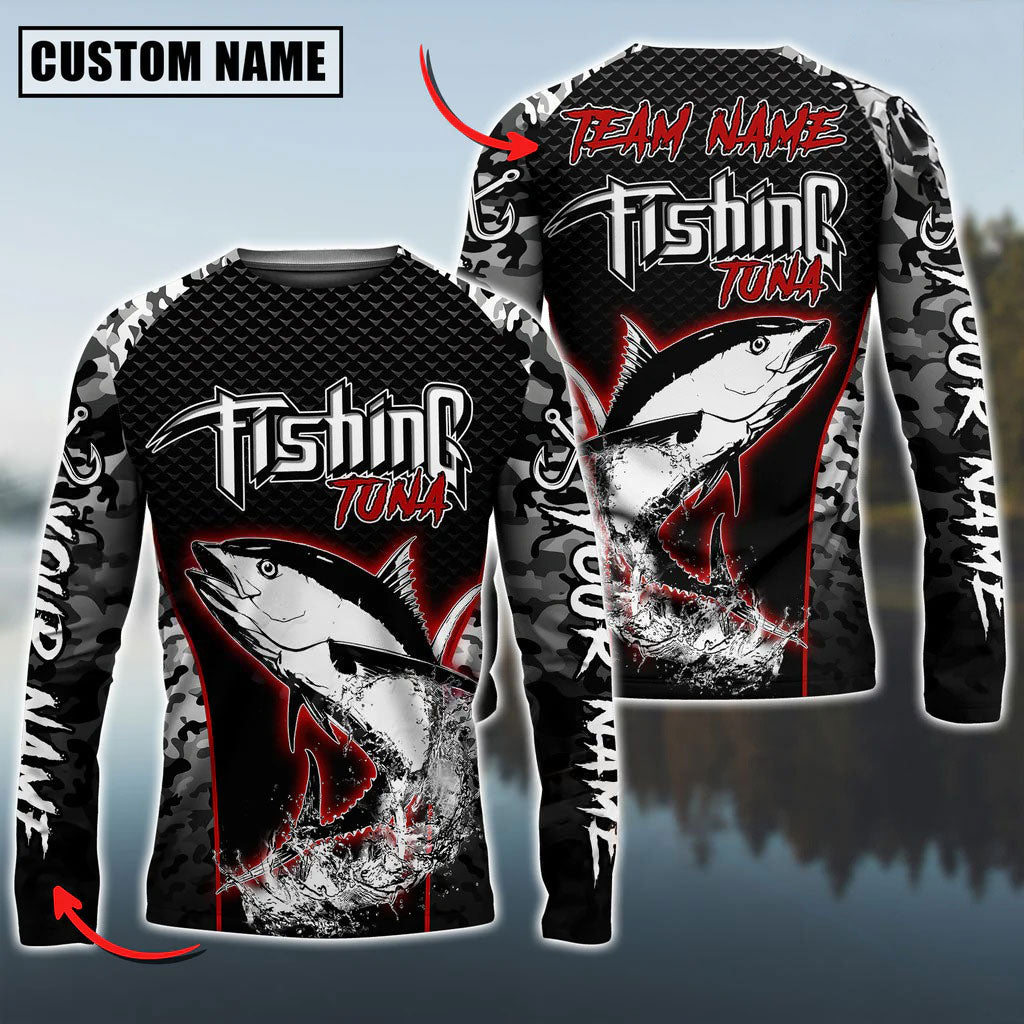 Bluejose Tuna Fishing Aggressive Red Splash Camo Pattern Sport Custom Name & Team Name 3D Shirts