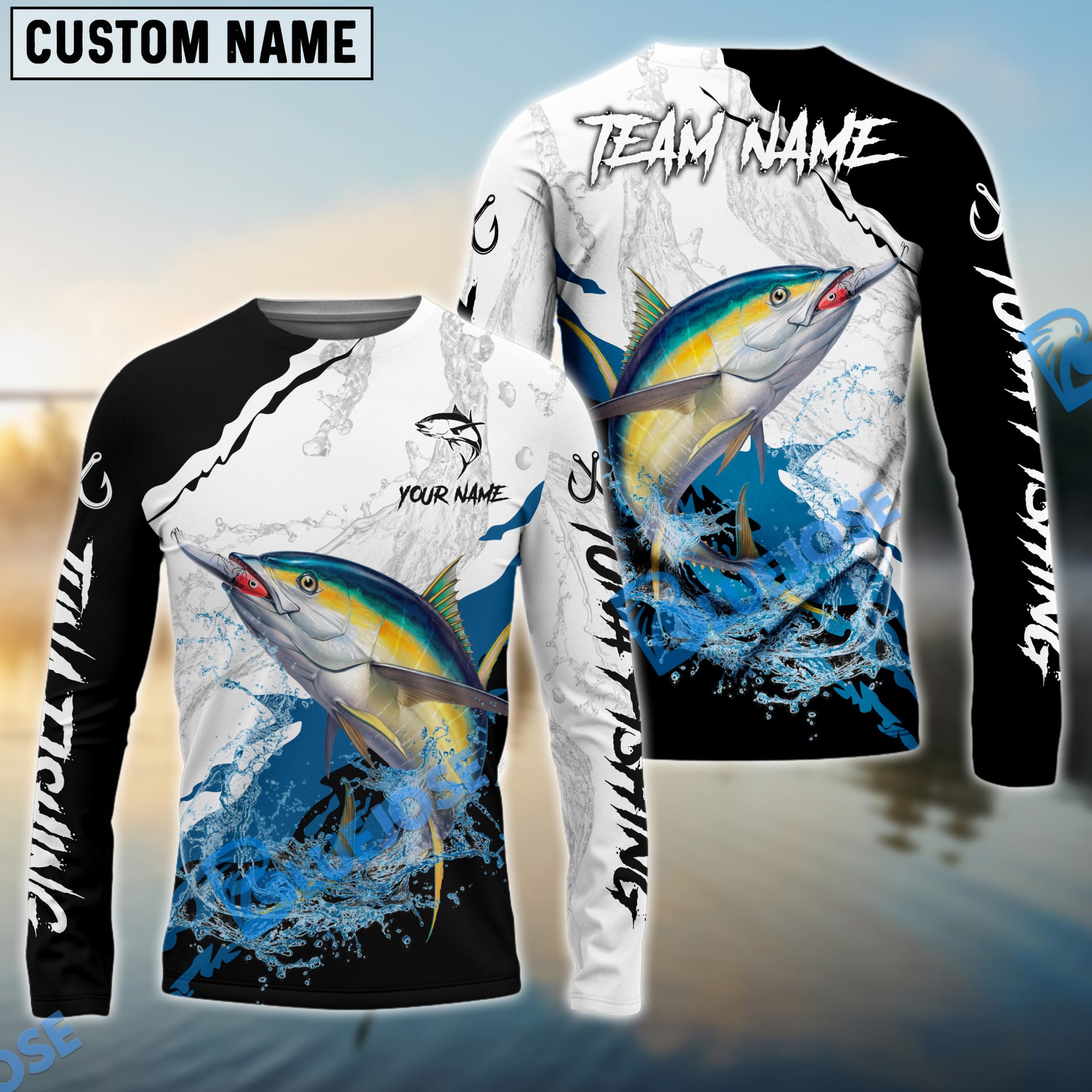 Bluejose Tuna Fishing Black White Water Flow Custom Name & Team Name 3D Shirts