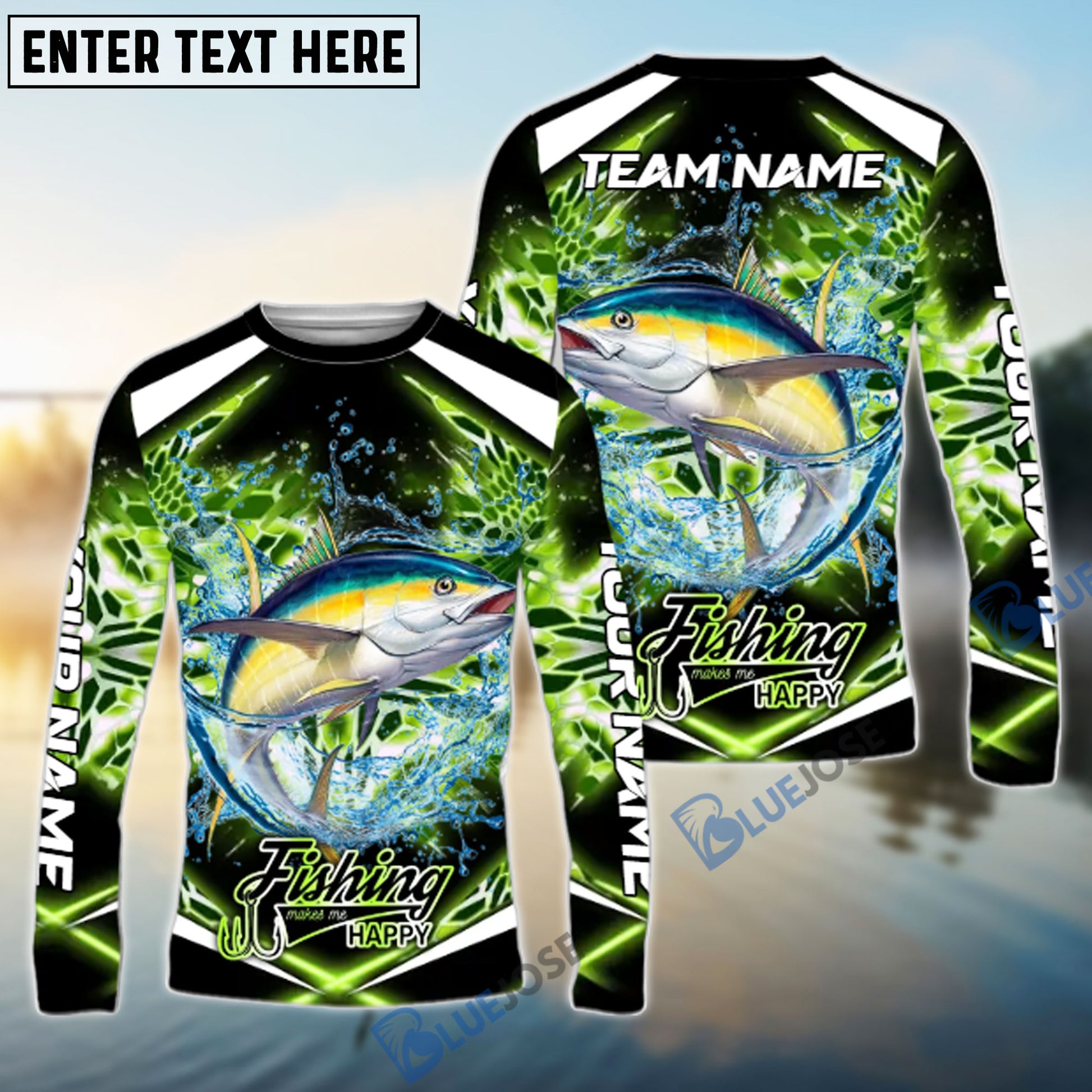 Bluejose Tuna Fishing Green Happy Hook Design Name & Team Name 3D Shirts