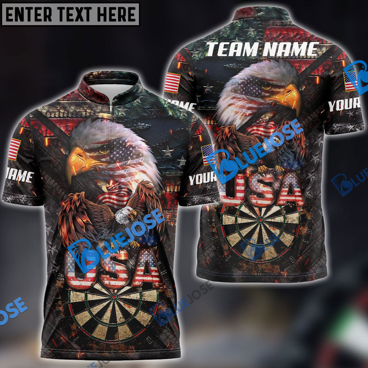 BlueJose USA Pride Eagle Darts Personalized Name, Team Name Shirt